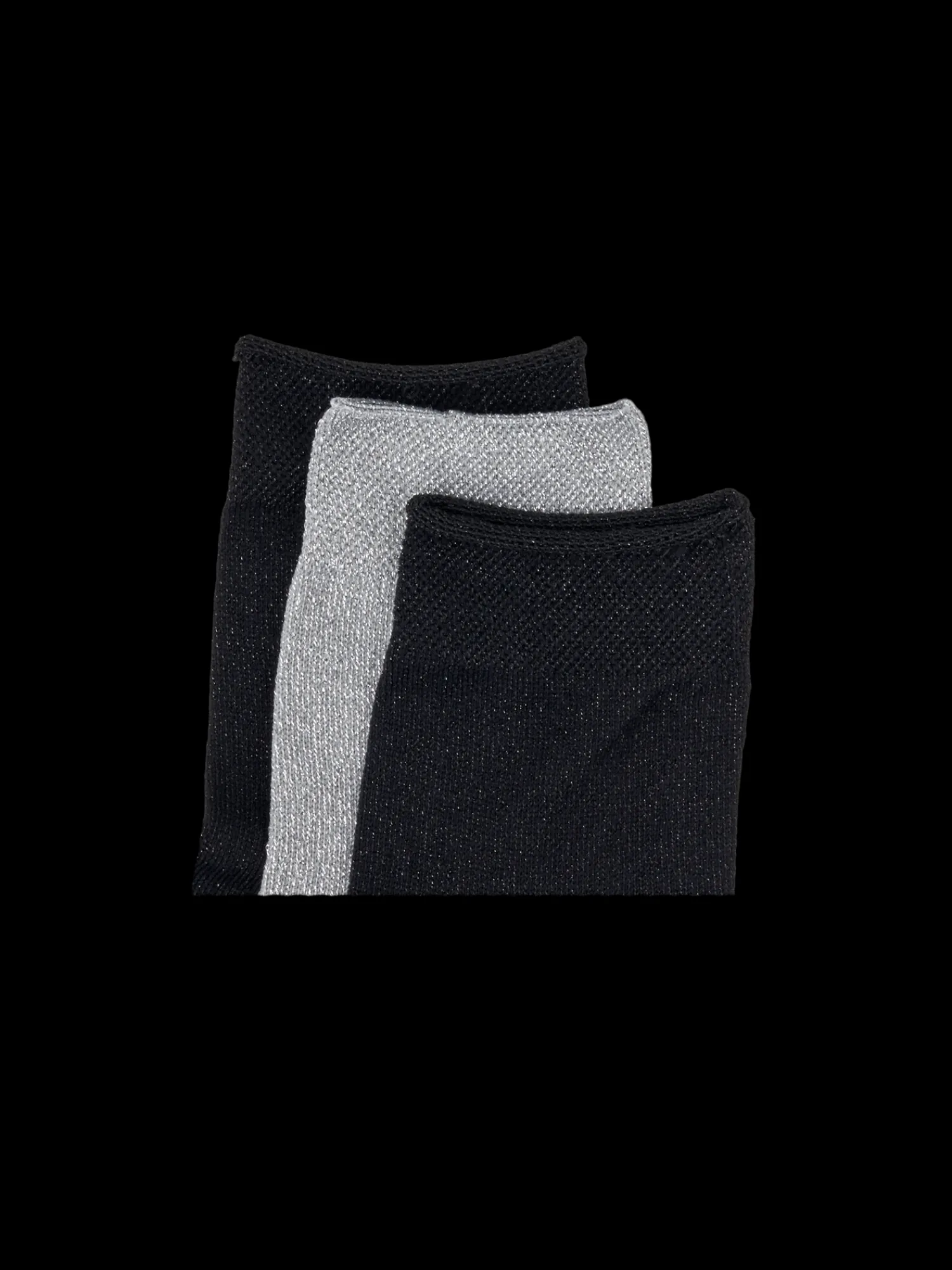 Søstrenes strømper er lavet af 70% polyamid, 28% polyester, hvoraf 10% er glittertråd, og 2% elastan. De er STANDARD 100 by OEKO-TEX®-certificeret*. En pakke indeholder 3 par sokker i størrelse 31/33.*20.HCN.42161 HOHENSTEIN HTTI
