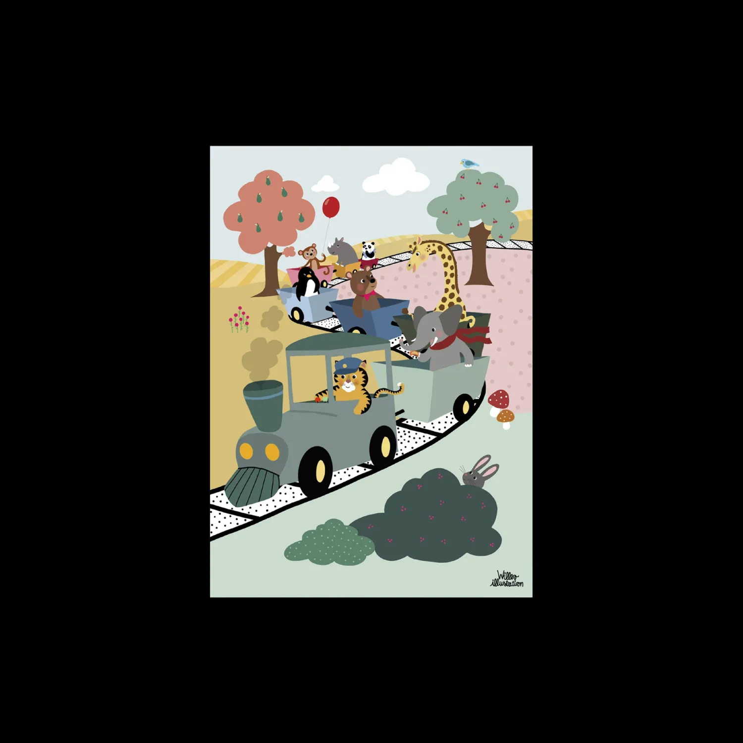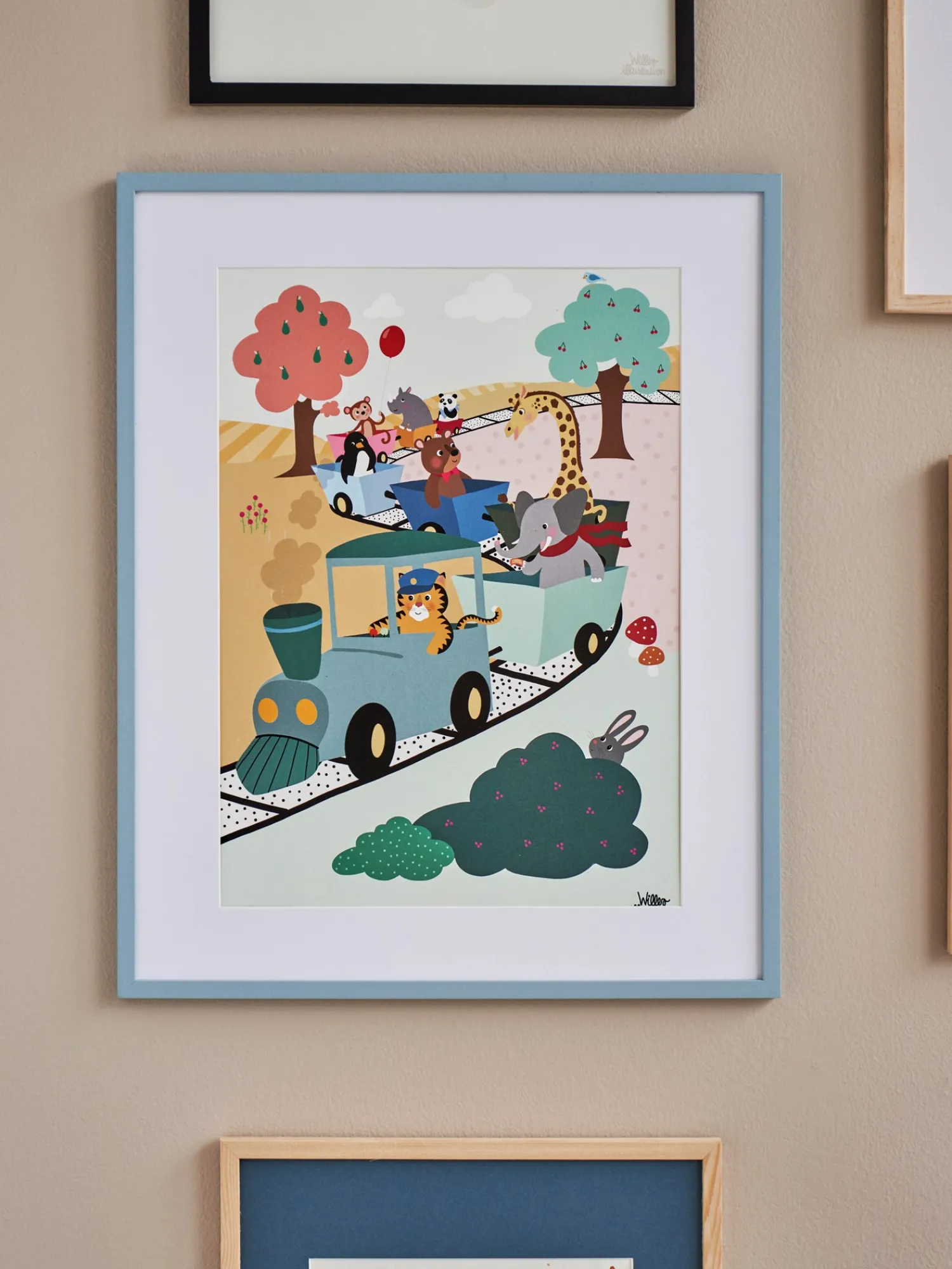 Søstrene gør Dem venligst opmærksom på, at denne vare kun forhandles online.Adventure Train-plakaten fra Poster & Frame er trykt på papir af høj kvalitet for at sikre, at kunstværket kan glæde Dem i mange år fremover. Kunstværket er af Willero Illustration og er i A3-format.Anna og Clara tror på glæden ved at have smuk kunst på væggene, også på børneværelset. Det pryder ikke kun hjemmet, men inspirerer også til kreative sysler. “Hvorfor ikke dekorere børneværelset med sjove dyreprint?” foreslår Clara. “Det er en dejlig idé,” svarer Anna begejstret og begynder straks at vælge et par plakater til deres nevøs og niecers værelse. Plakaten kommer i et sikkert paprør.