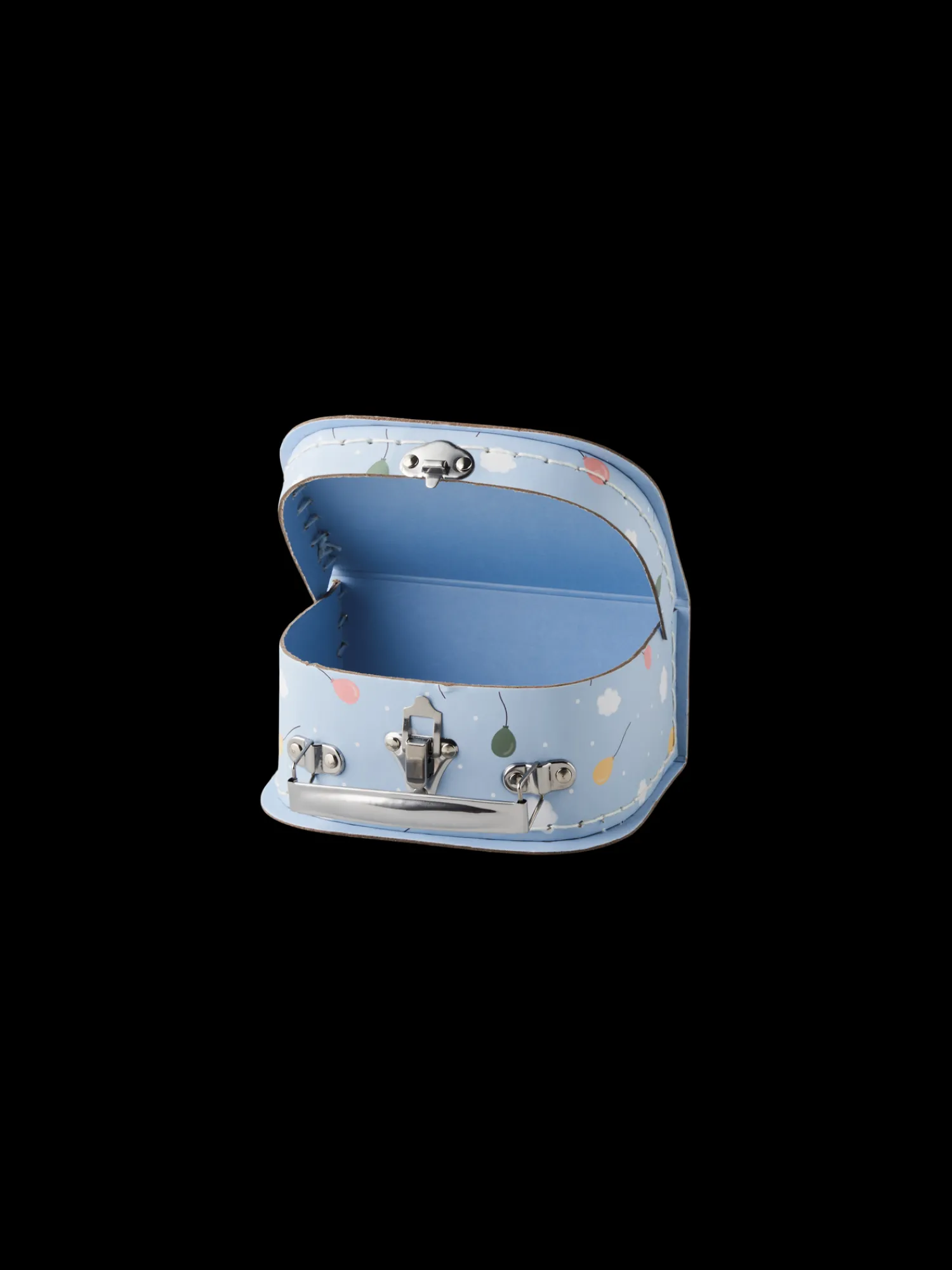 Søstrenes børnekuffert er lavet af pap og måler 16 x 12 x 7 cm.Når søstrenes nevø overnatter hos Anna og Clara, tager han altid sit yndlingslegetøj med sig. For at gøre turen hjem til søstrene lettere har Anna skabt denne skønne kuffert. “Det gør også turen mere behagelig for legetøjet,” smiler nevøen.