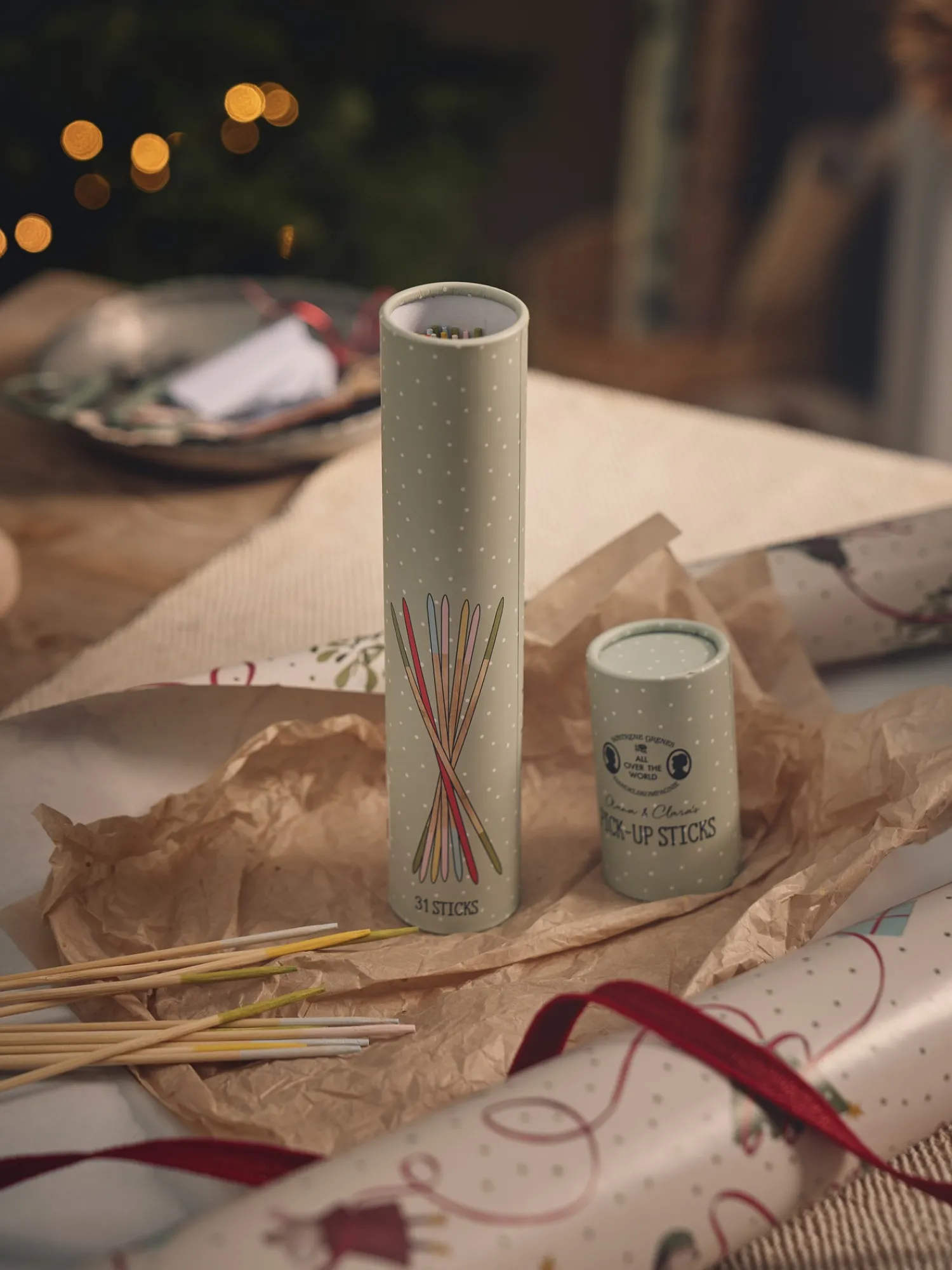 Søstrenes pindespil er lavet af FSC®-certificeret bambus og kommer i et flot rør til opbevaring.