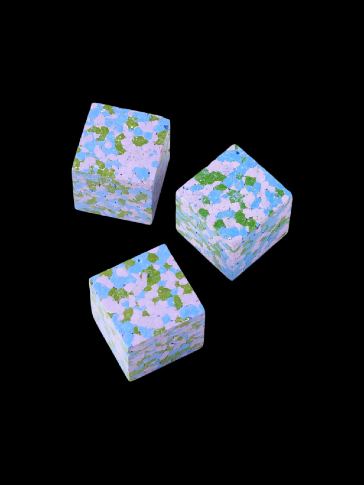 Søstrenes konfetti-farvekridt er terningformede og måler 4 x 4 x 4 cm. Hver farveblyant består af 3 forskellige farver.