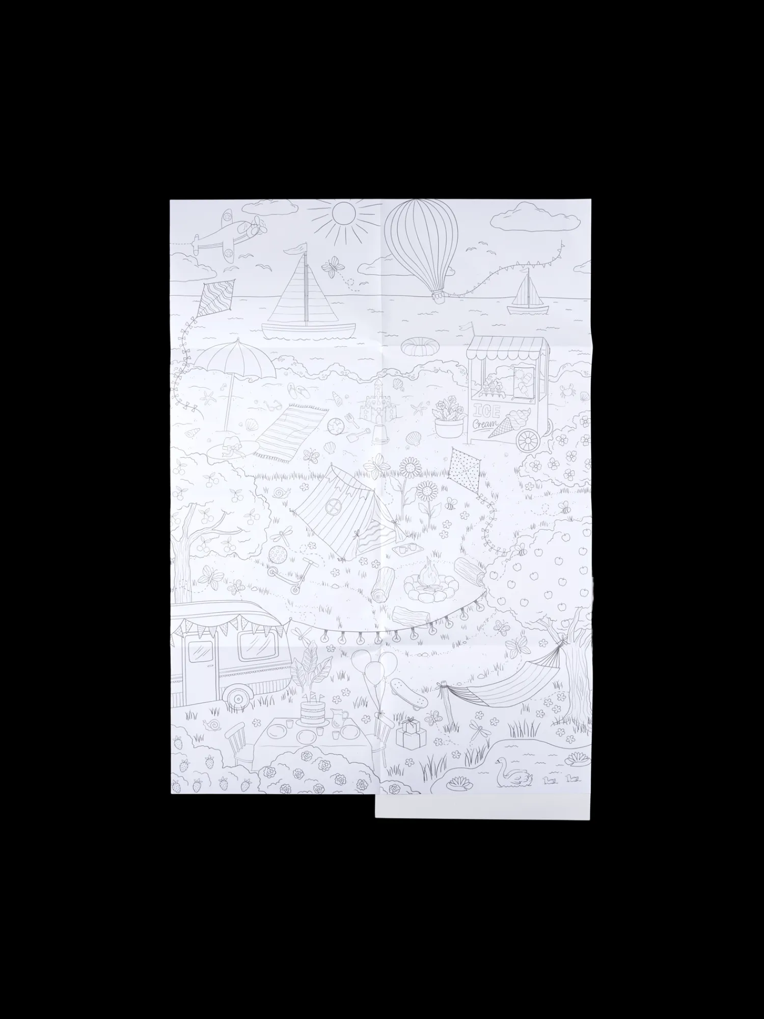 Søstrenes foldbare plakat til farvelægning er lavet af FSC®-certificeret papir og bærer Svanemærket. Den måler 59 x 84 cm, når den er foldet ud, og 21,5 x 30 cm, når den er foldet sammen. Denne skønne plakat er produceret i Danmark.