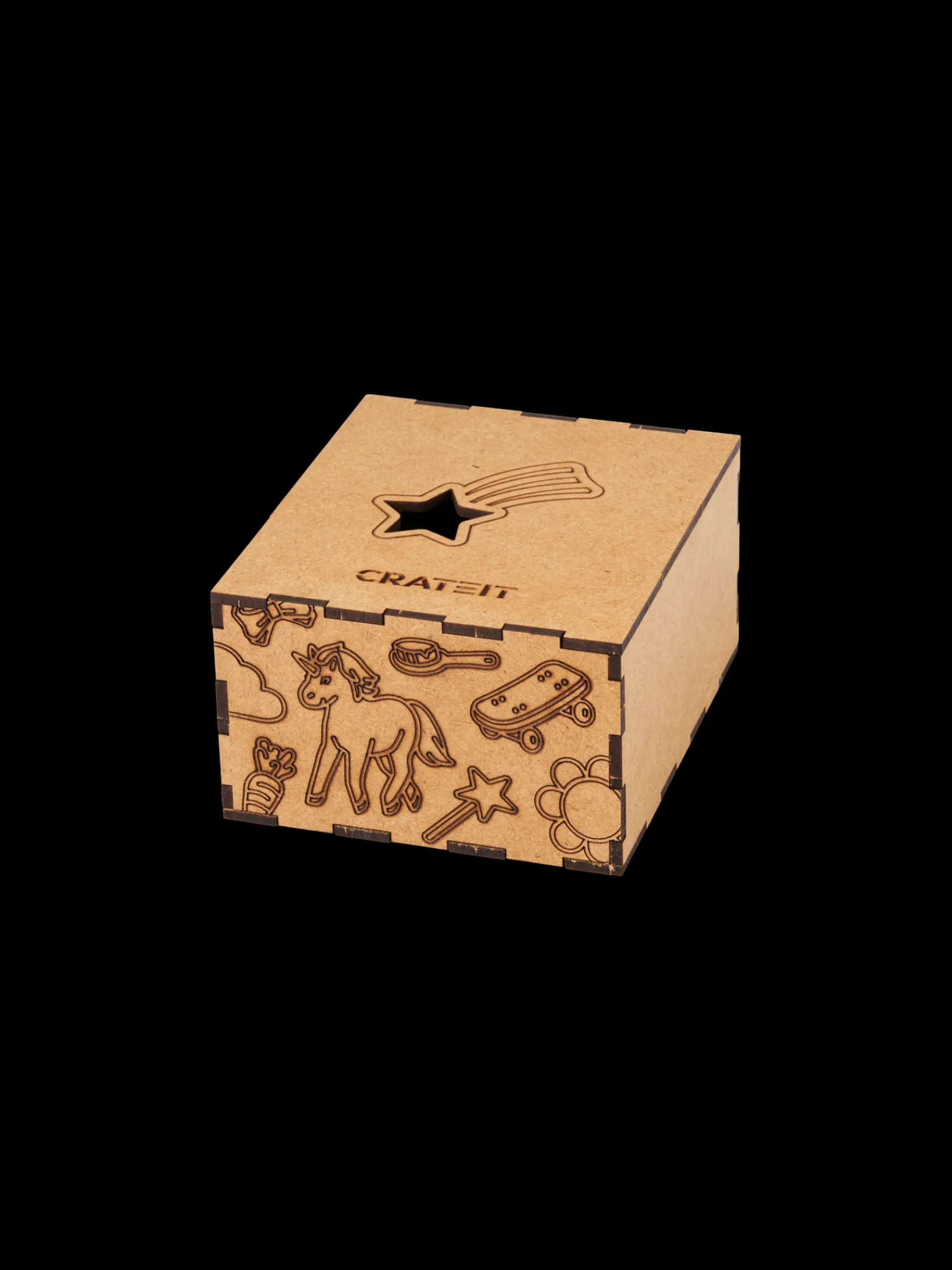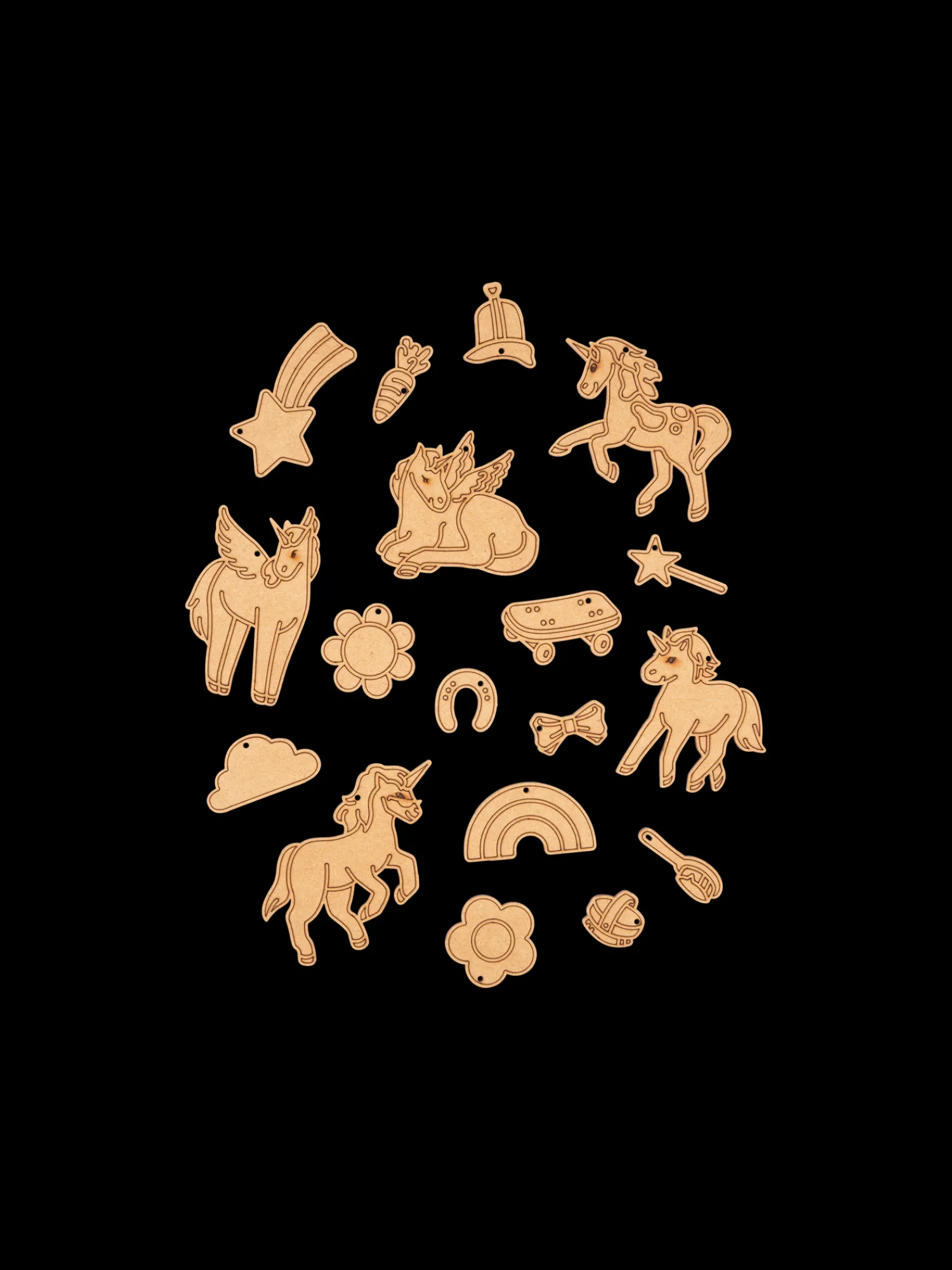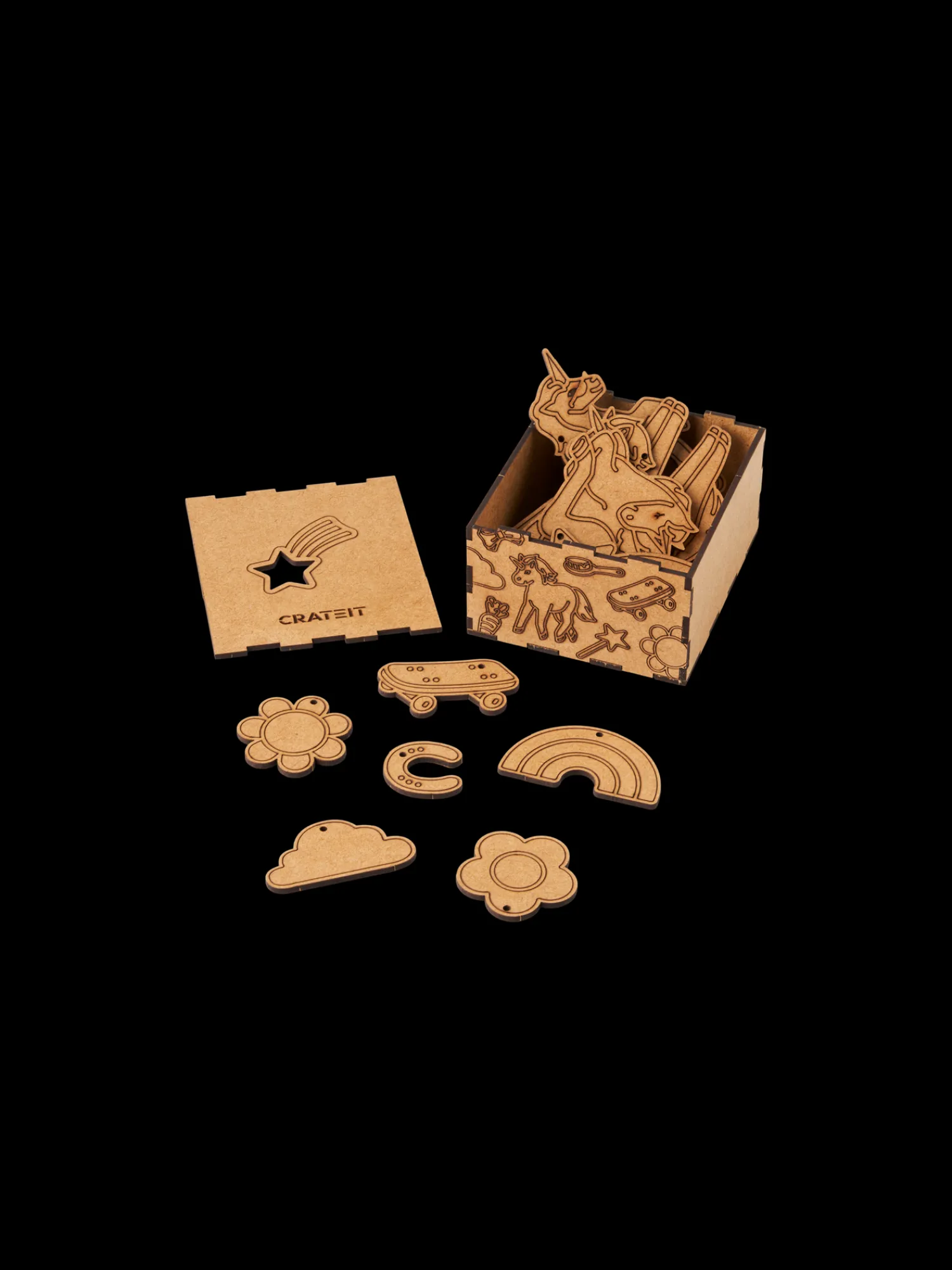 Et finurligt lille DIY-kit fra danske Crateit, produceret på Fyn. Kittet indeholder 18 træfigurer lavet af HDF. Figurerne er ikke malede, så de kære små kan dekorere dem, som de vil, enten med maling eller tusch.
