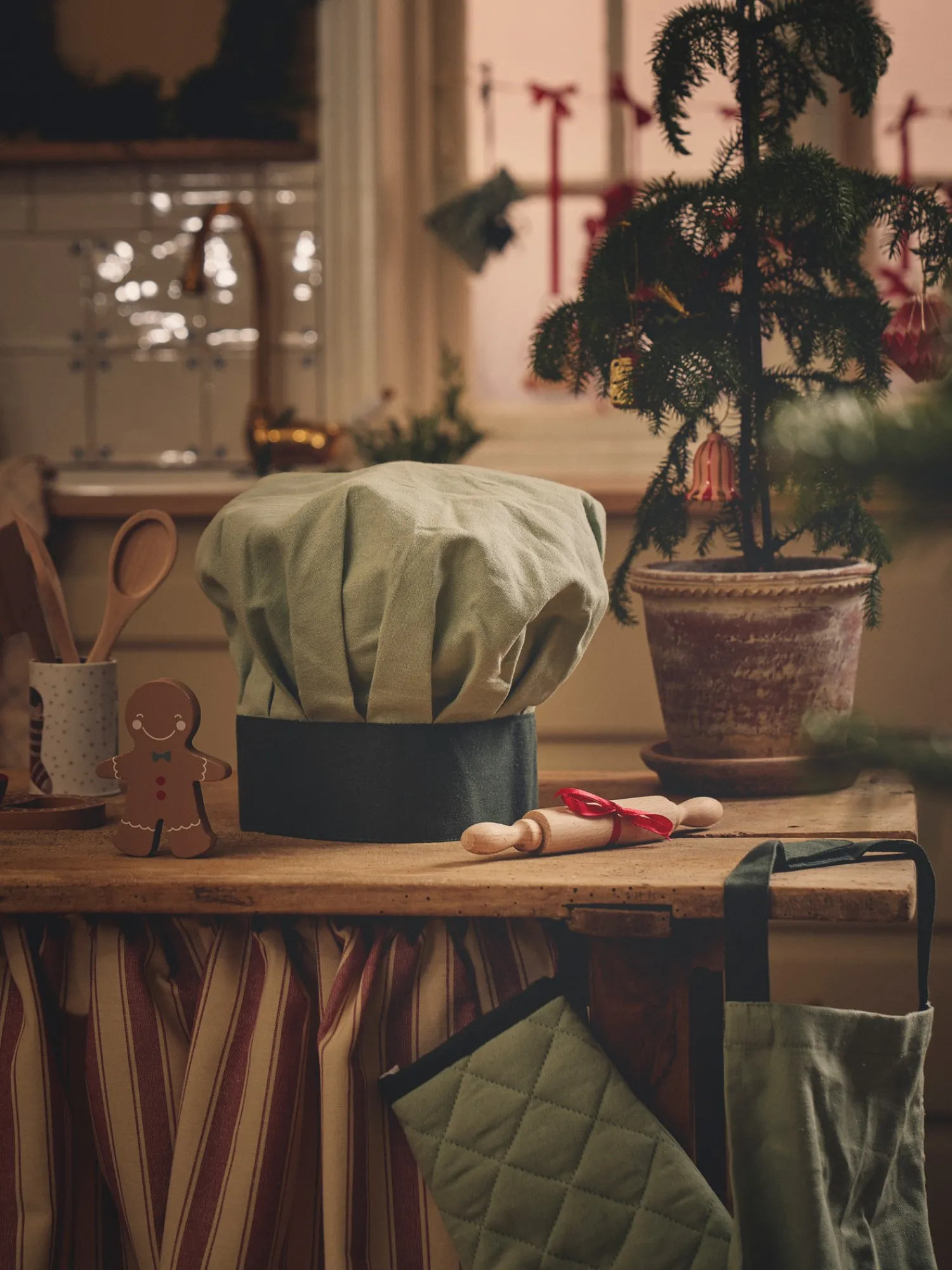 Søstrenes kokkehue til børn er STANDARD 100 by OEKO-TEX®-certificeret. Den har en burrebåndslukning, som gør den justerbar i størrelsen.