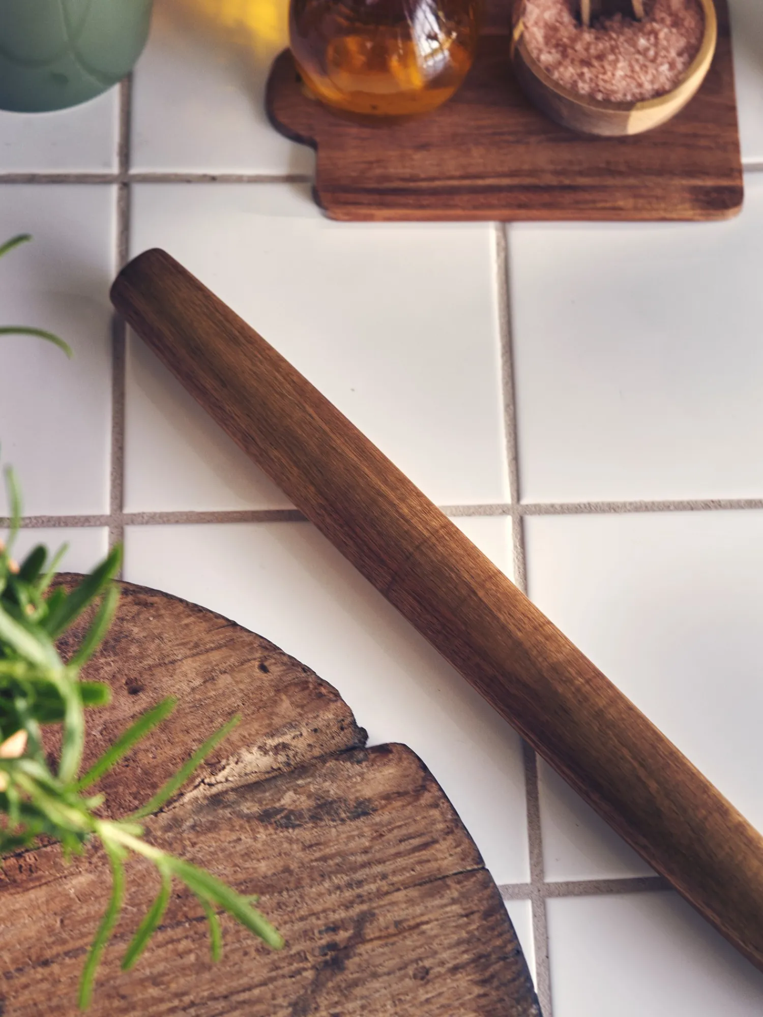 Søstrenes kagerulle er lavet af FSC®-certificeret akacietræ og måler 3,6 x 40 cm.