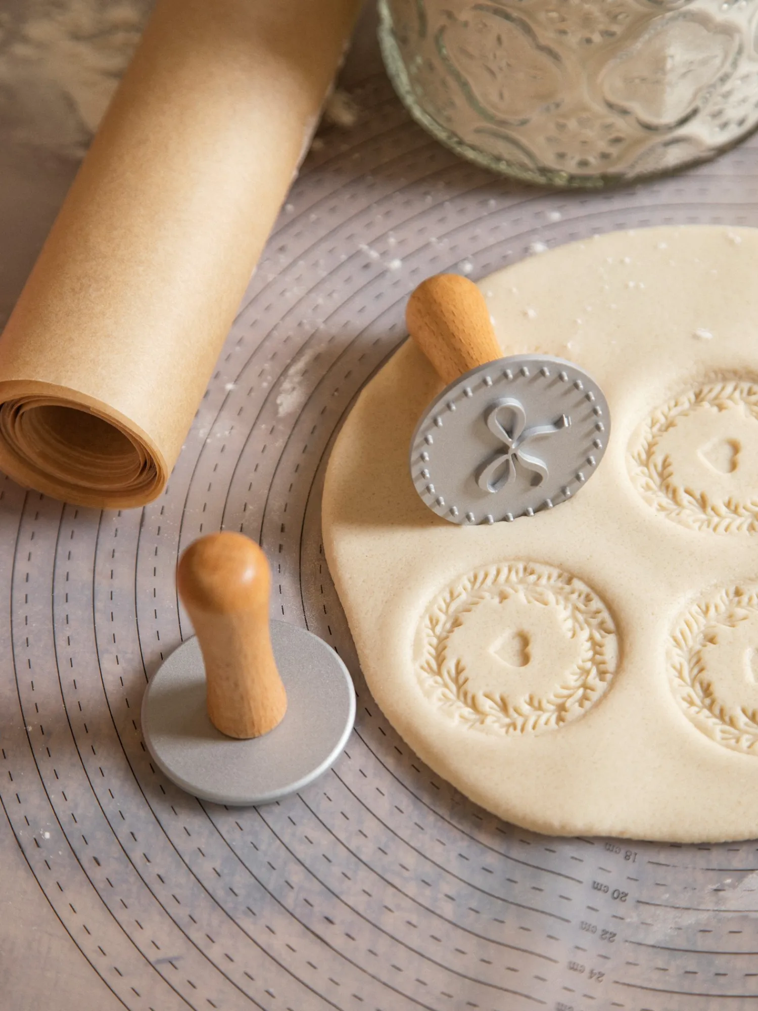 Søstrenes småkagestempel er lavet af 100% FSC®-certificeret bøgetræ samt aluminium. Lav et yndigt sløjfeaftryk på Deres småkager.