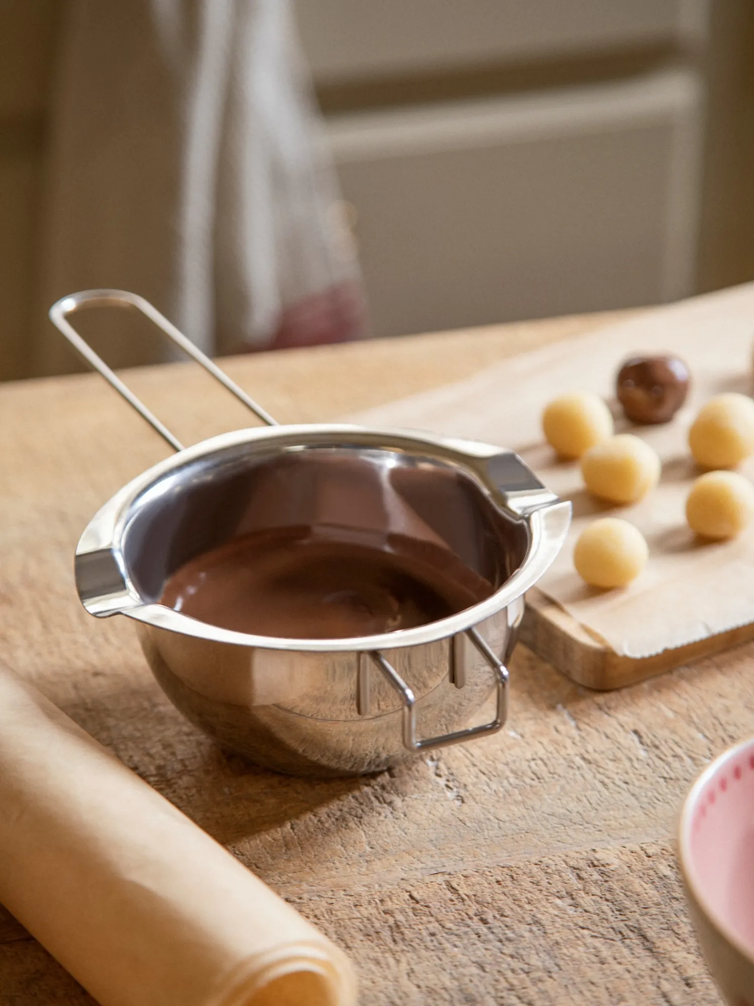 Søstrenes dobbeltkedelindsats er lavet af rustfrit stål og er ideel til smeltning af chokolade.