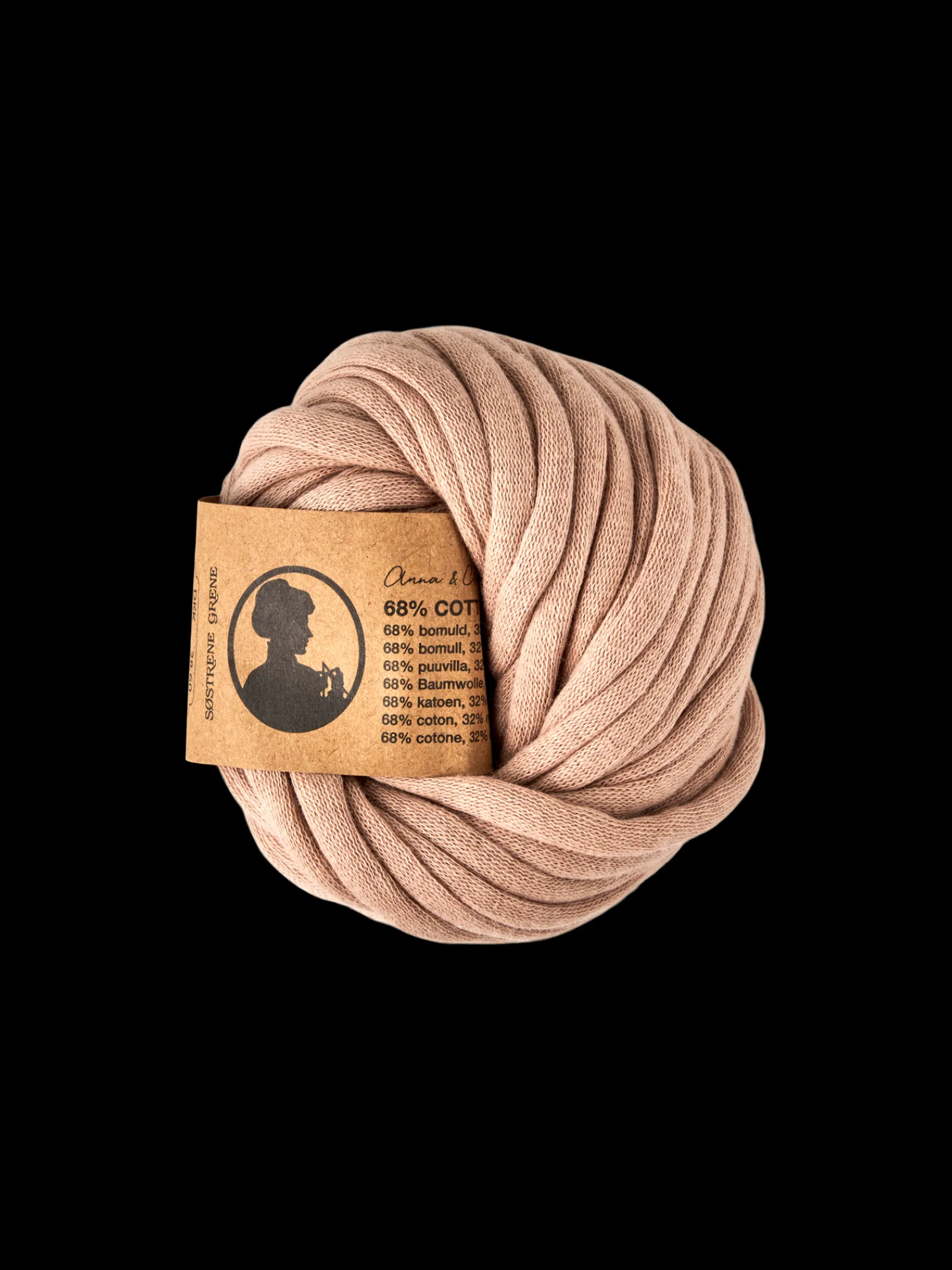 Søstrenes tubegarn, også kaldt stofgarn, er lavet af 68% bomuld og 32% nylon. Hver nøgle med stofgarn vejer 50 g.”At arbejde med garn er at udvise en særlig form for omsorg,” som Anna ynder at sige.Lad stofgarnet danne et blødt udgangspunkt for Deres næste projekt. Søstrene har brugt dette stofgarn til at hækle en charmerende clutch.”Den fine clutch er også en skøn og personlig gaveidé,” siger Anna med et smil.