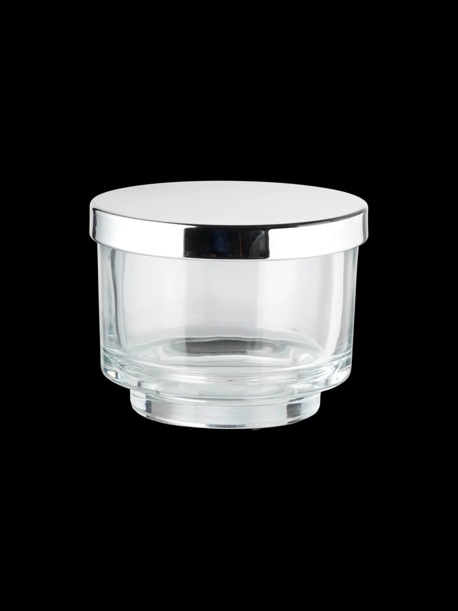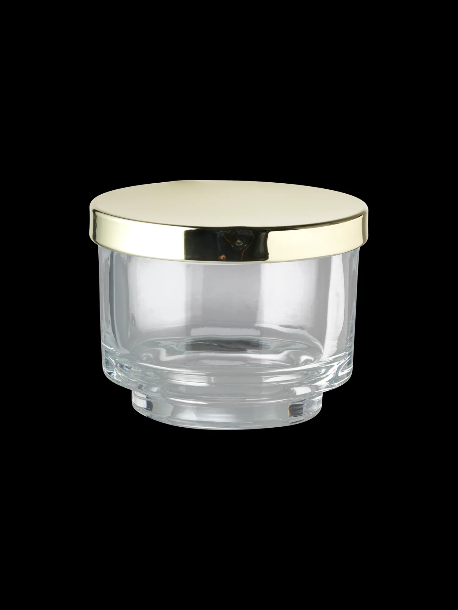 Søstrenes dekorative krukke er lavet af glas med et låg af jern.
