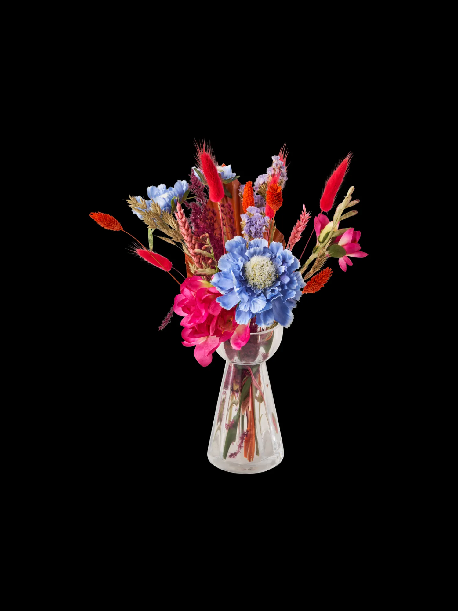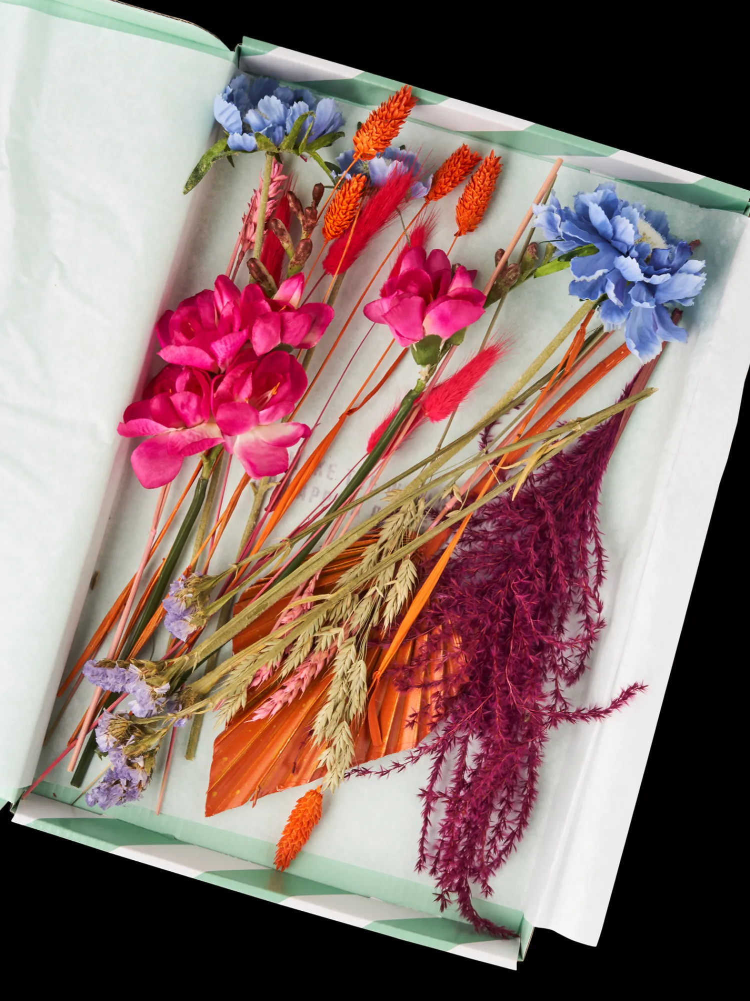 Søstrene gør Dem venligst opmærksom på, at denne vare kun forhandles online.De tørrede blomster og silkeblomster Good Vibes fra BloomPost måler ca. 30 cm. “Blomster bringer virkelig liv til et rum, uanset om de er friske, tørrede eller af silke,“ siger Anna med et smil. “Tørrede blomster er også fremragende gaver til Deres kære, da de vil vare i meget lang tid og kan bruges i alle mulige omgivelser.””De kan fremstille dem i en vase eller bruge individuelle blomster til at pryde Deres kreative projekter. Mulighederne er uendelige,“ tilføjer Clara.Blomsterne kommer i en elegant papirkasse, der inkluderer indretningsidéer til forskellige kreative opstillinger.Anna og Clara gør Dem venligst opmærksom på, at silkeblomsternes farve kan falme og de tørre blomster kan kaste et par blade af sig over tid. De anbefaler at håndtere dem omhyggeligt og ikke placere dem for tæt på varme eller i fugtige rum, såsom badeværelset. På grund af varierende tilgængelighed, kan udvalget af farver og blomster variere lidt fra de viste billeder.