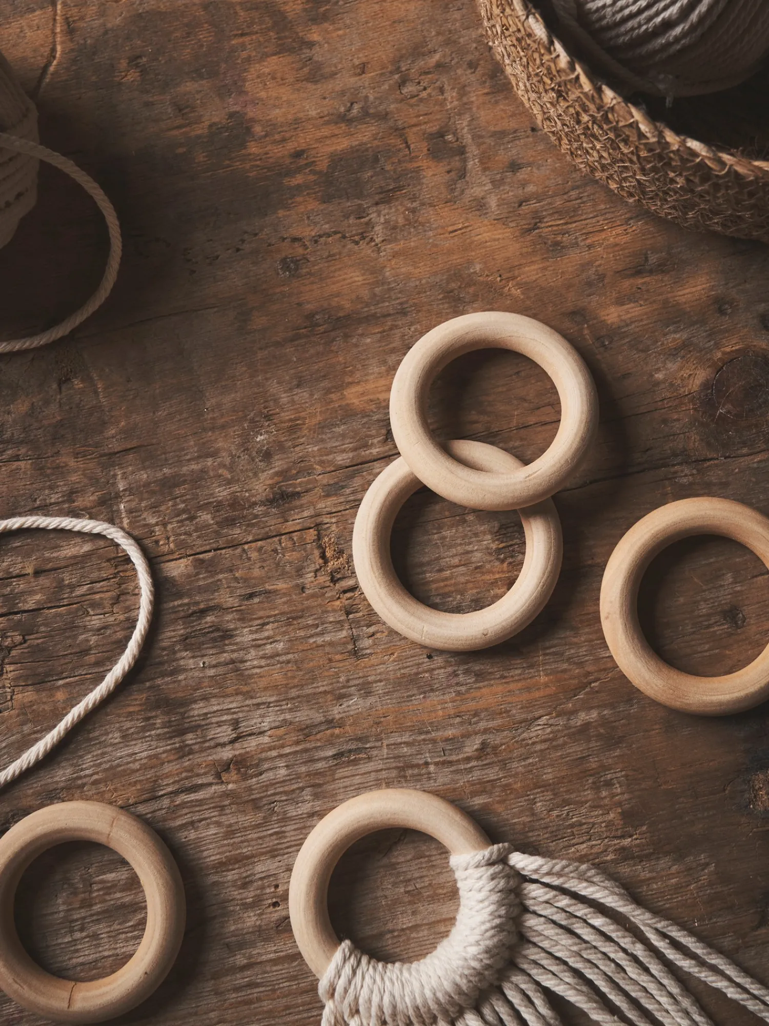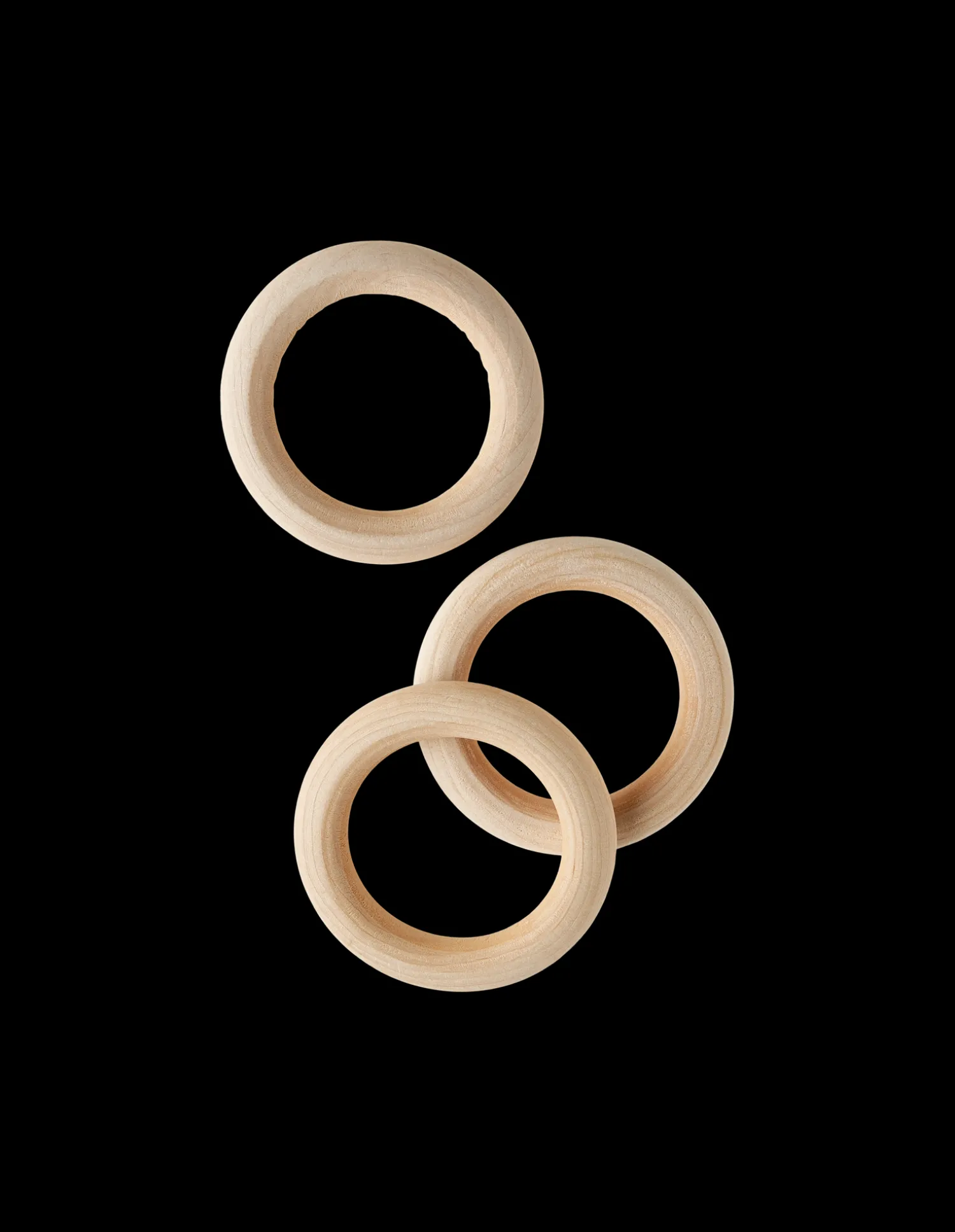 Søstrenes træringe er lavet af 100% FSC®-certificeret schima superba-træ og har en diameter på 6 cm. Hver pakke indeholder 3 stk.