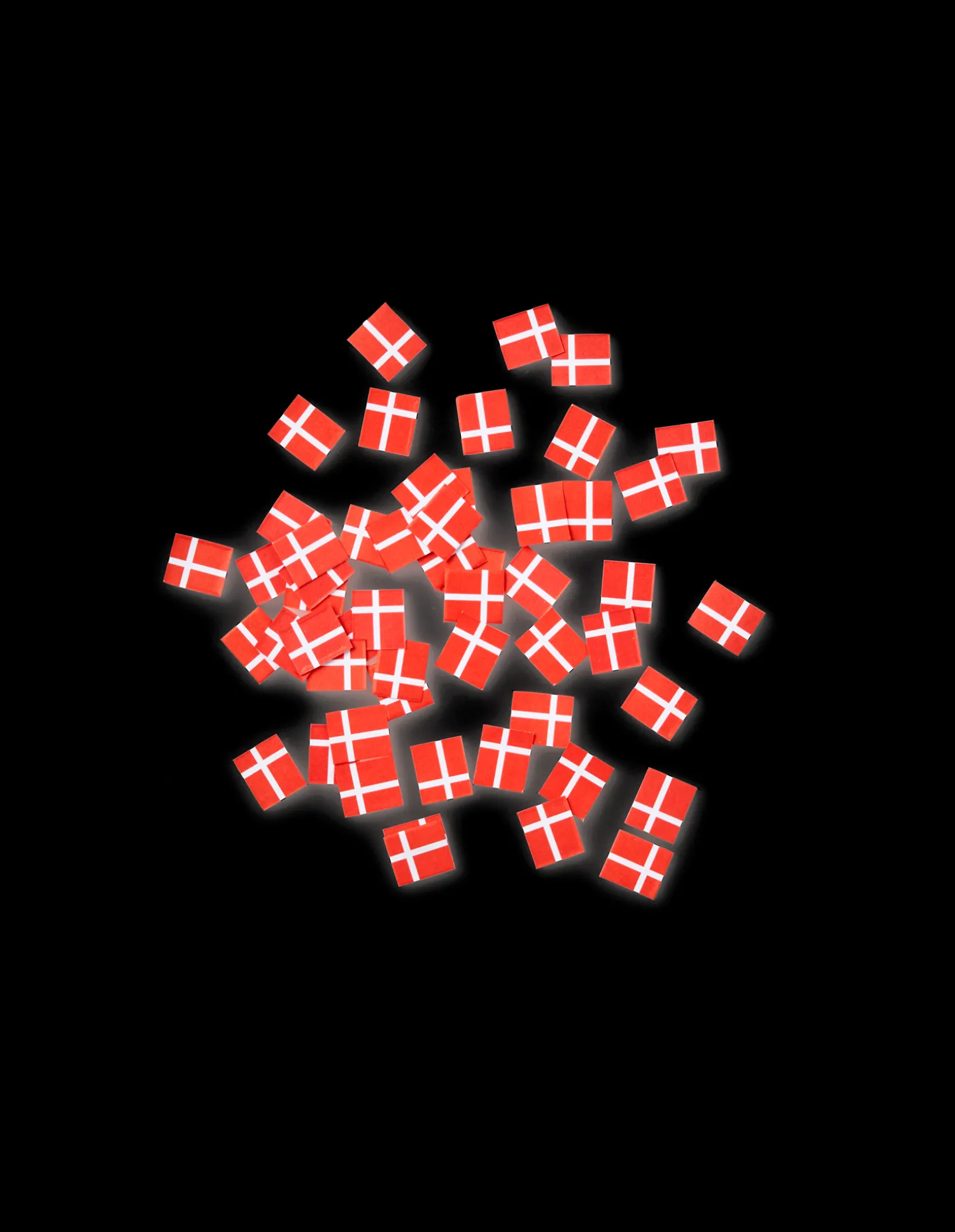 Søstrenes strøflag illustrerer det danske flag Dannebrog. Hvert flag måler 1,5 x 1,3 cm og fås i en pakke à 15 gram.