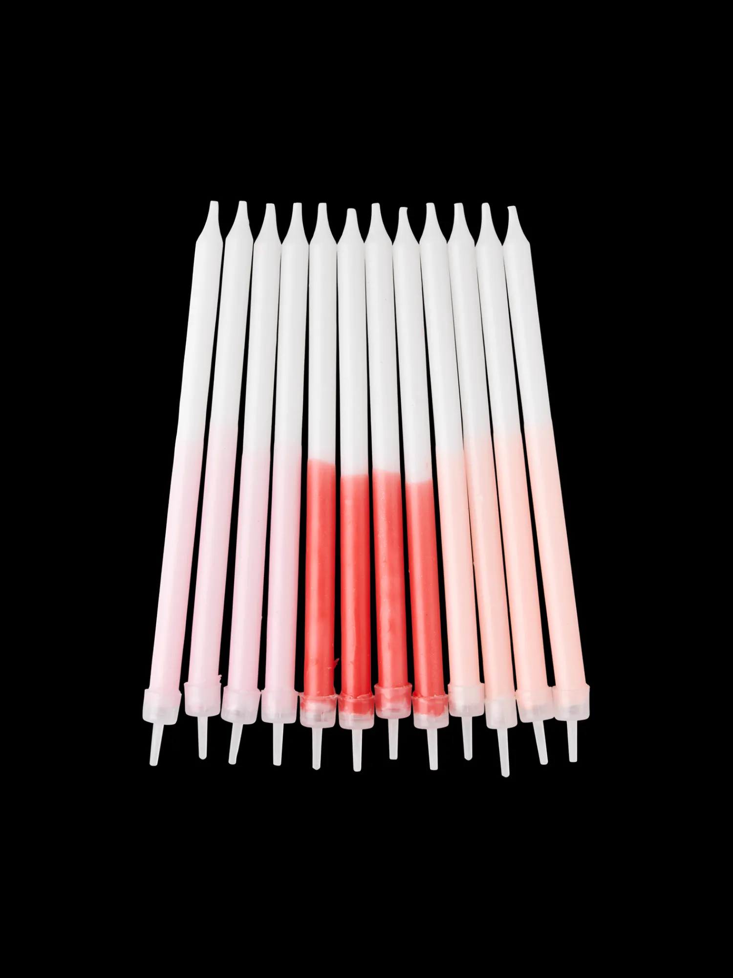 Søstrenes kagelys kommer i et sæt med 12 lys og 12 gennemsigtige lysestager.