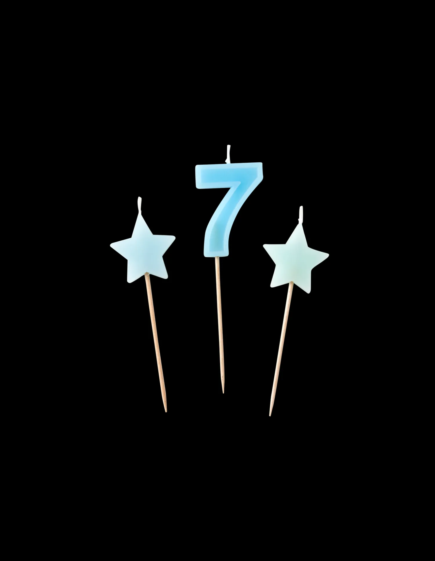 Søstrenes kagelys er lavet af paraffin, og hver pakke indeholder et tallys samt to stjerneformede lys. Tallet ‘7’ måler 11,5 x 3 cm, og de to stjerner måler hver 9 x 3 cm. Alle tre stearinlys kommer med et spyd, der måler 7 cm i længden. “Skønheden ligger i detaljerne,” som Anna og Clara gerne siger.