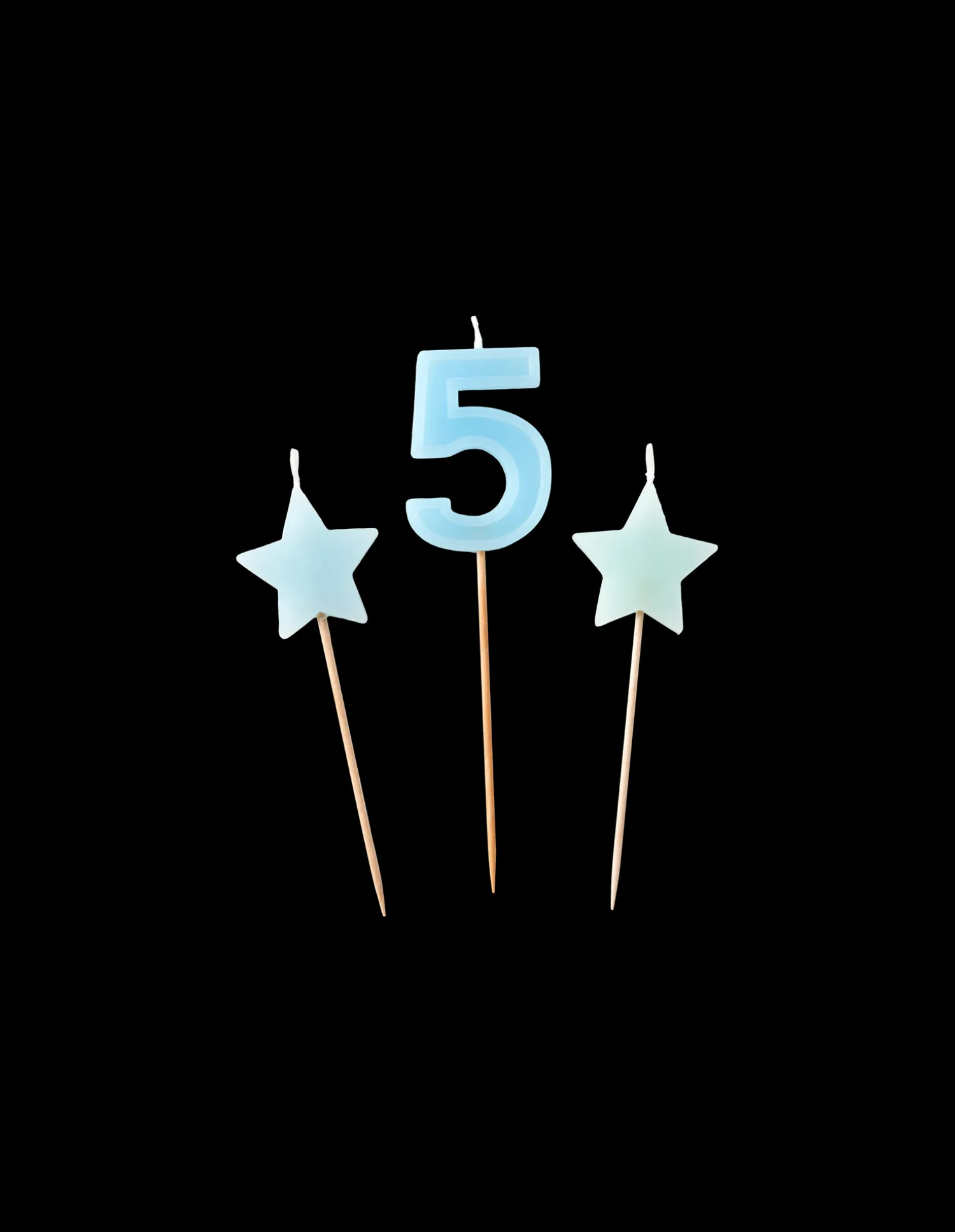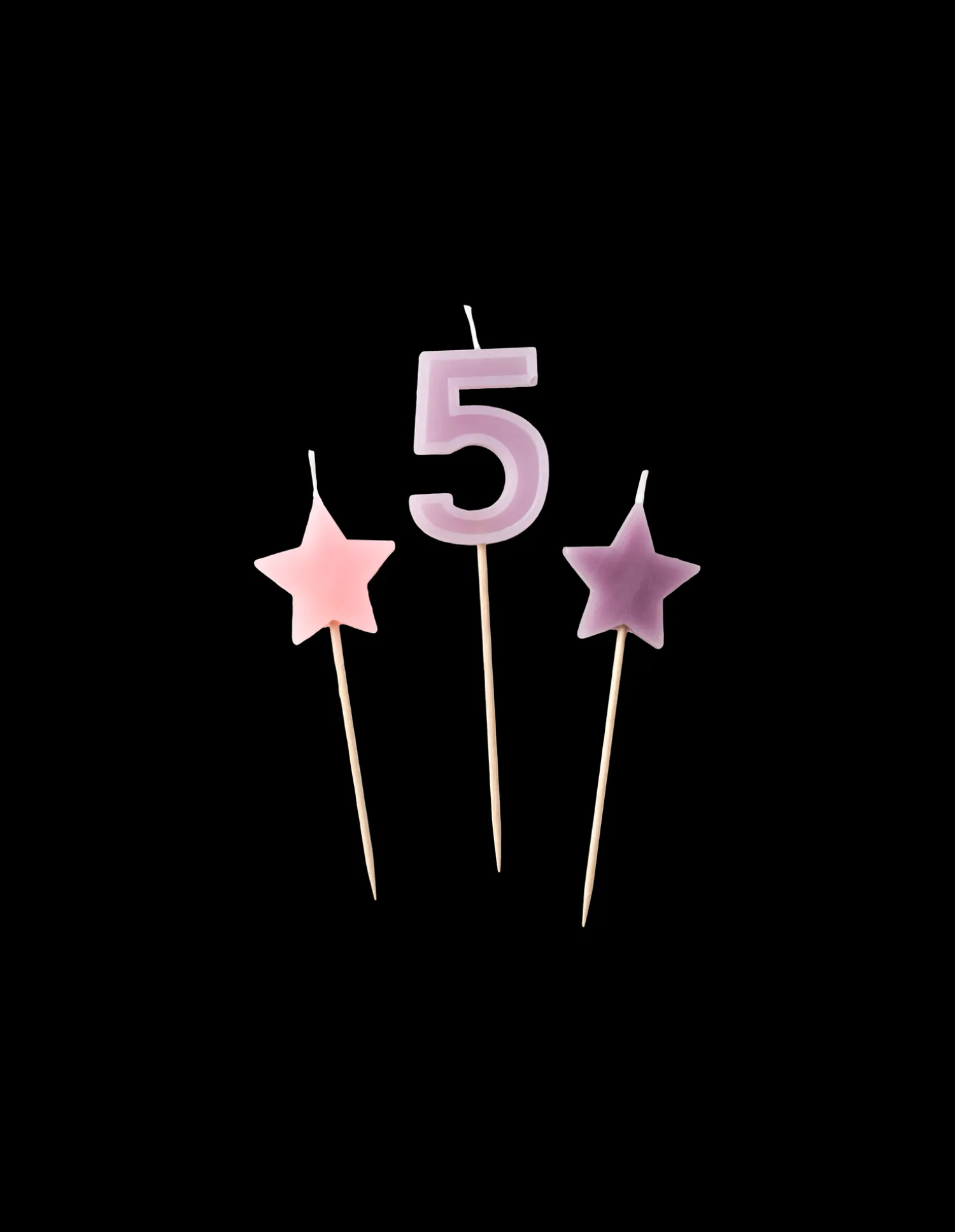 Søstrenes kagelys er lavet af paraffin, og hver pakke indeholder et tallys samt to stjerneformede lys. Tallet ‘5’ måler 11,5 x 3 cm, og de to stjerner måler hver 9 x 3 cm. Alle tre stearinlys kommer med et spyd, der måler 7 cm i længden. “Skønheden ligger i detaljerne,” som Anna og Clara gerne siger.
