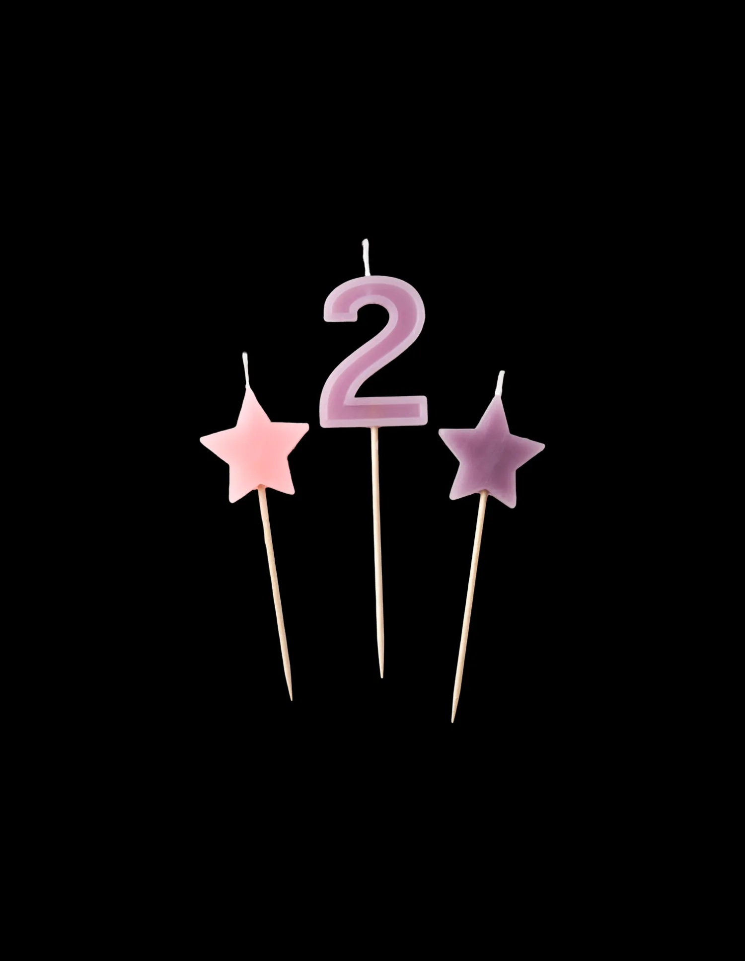 Søstrenes kagelys er lavet af paraffin, og hver pakke indeholder et tallys samt to stjerneformede lys. Tallet ‘2’ måler 11,5 x 3 cm, og de to stjerner måler hver 9 x 3 cm. Alle tre stearinlys kommer med et spyd, der måler 7 cm i længden. “Skønheden ligger i detaljerne,” som Anna og Clara gerne siger.