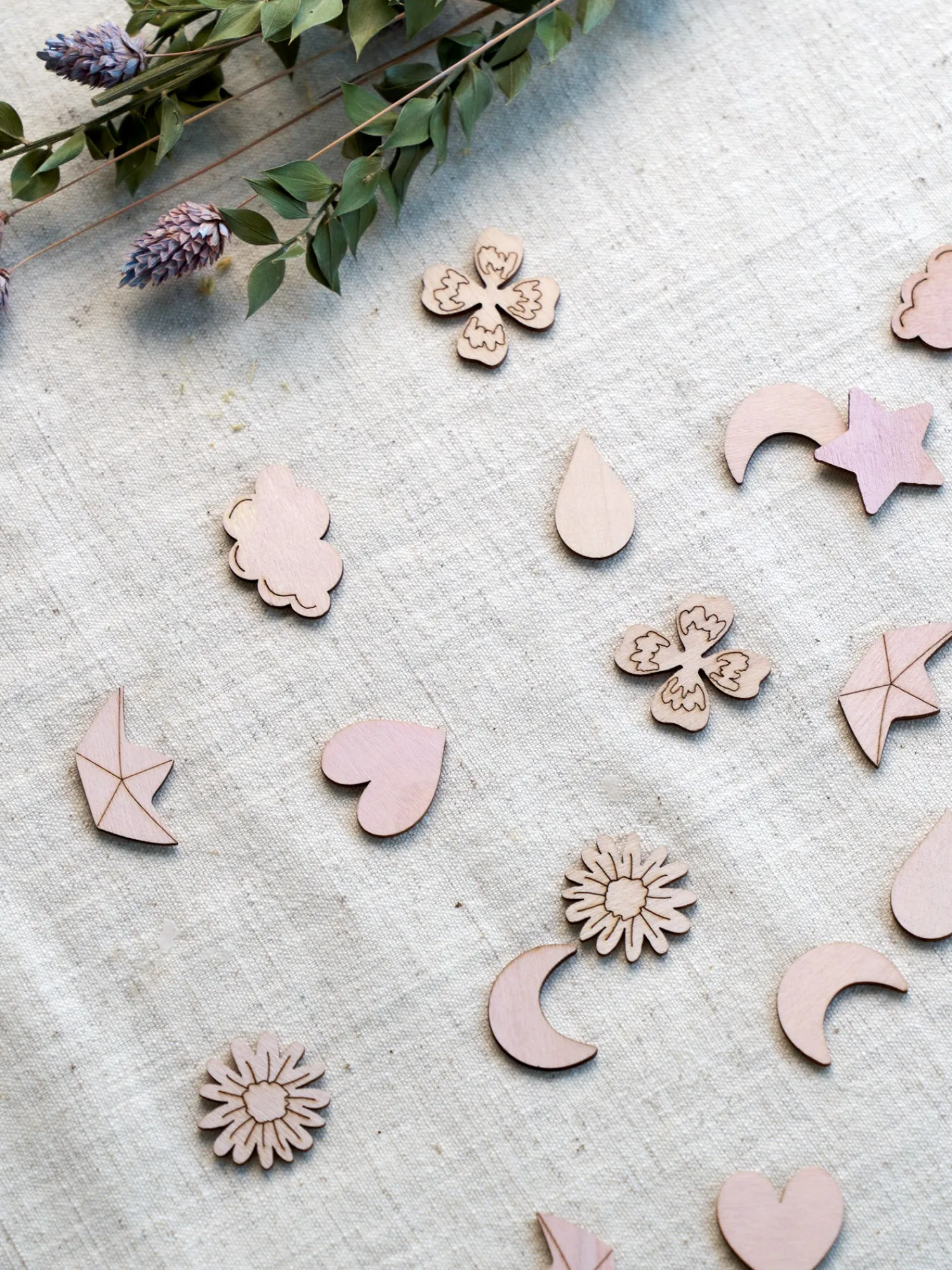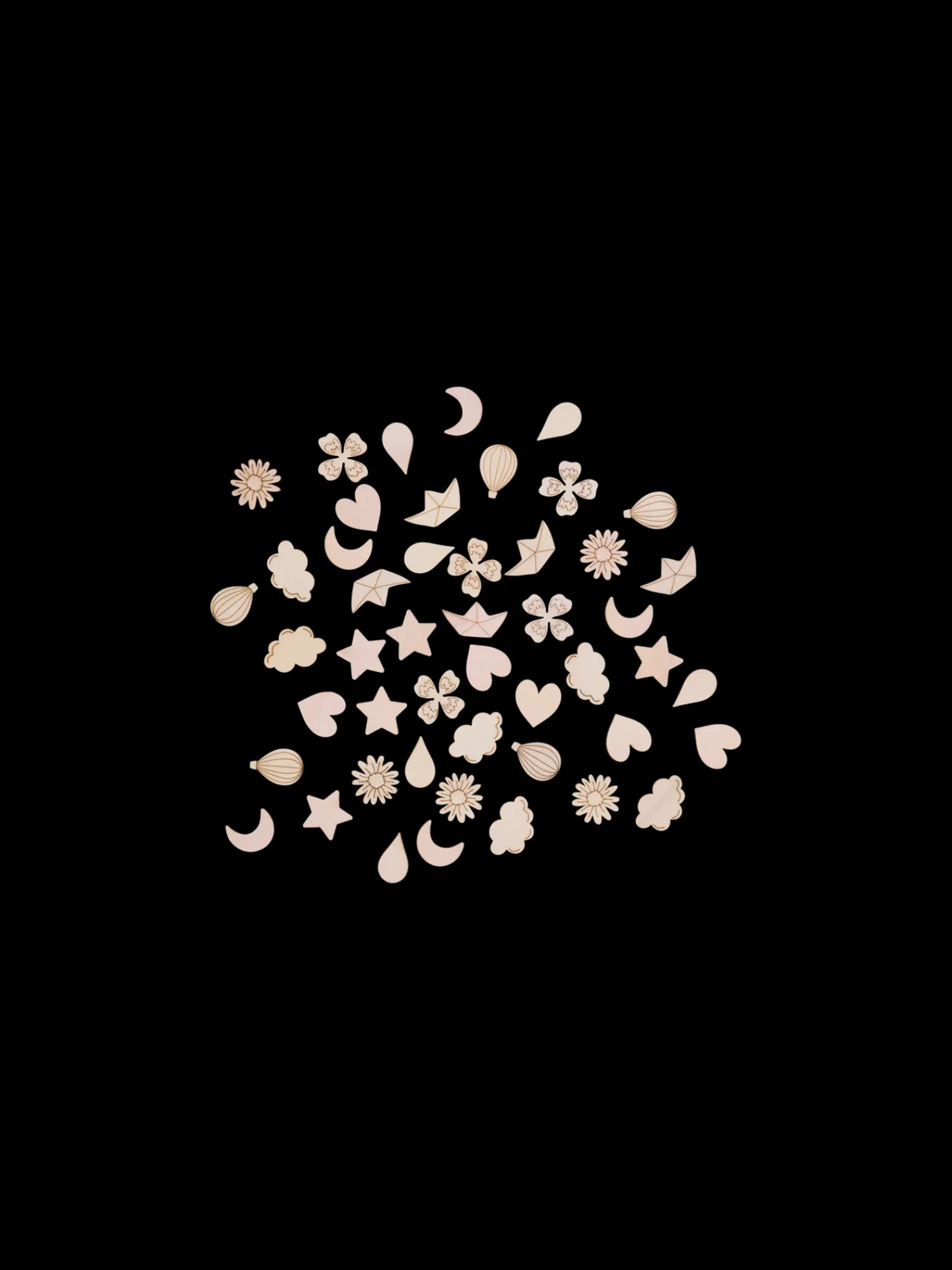 Søstrenes trækonfetti er 100 % FSC®-certificeret. En pakke indeholder 50 sjove former, der kan pifte enhver festlig lejlighed op.