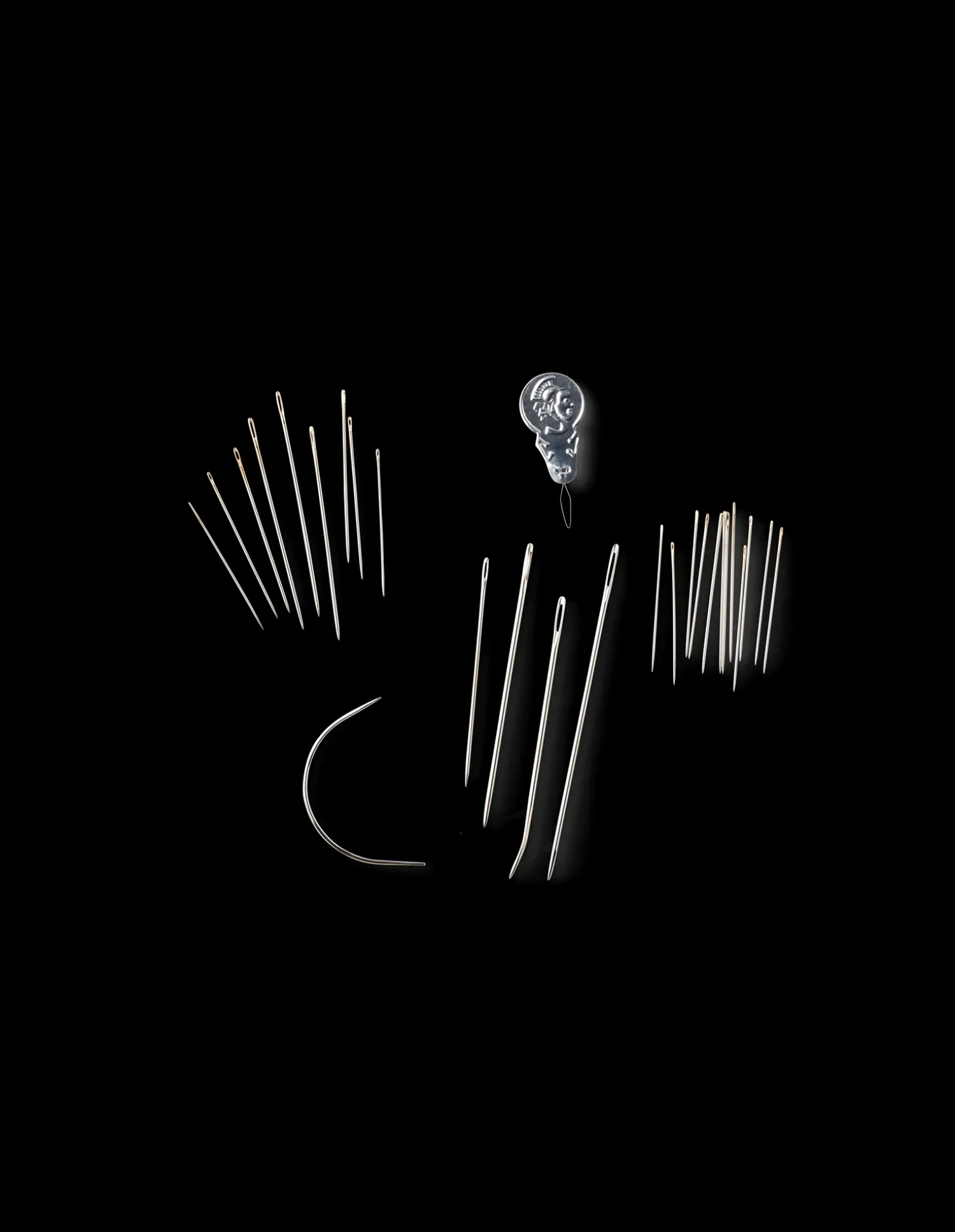 Søstrenes nålesæt er lavet af jern og indeholder 27 stykker syværktøj, såsom 12 diverse perlenåle med stort øje, 9 diverse synåle, 1 tæppenål, 1 sejlnål 1 sækkenål, 1 lige polsternål, 1 buet madrasnål og 1 nåltråder. “Omgiv Dem med de rette værktøjer, og oplev Deres kreativitet blomstre,” siger Anna.