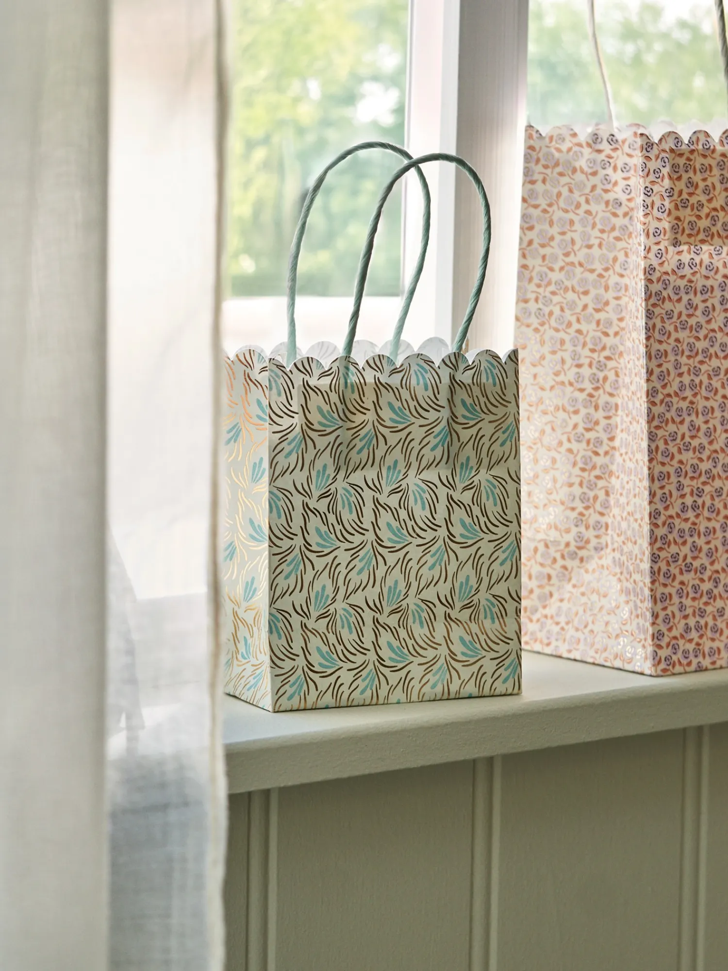Søstrenes gavepose er lavet af FSC®-certificeret papir.Papirgaveposer er en vidunderlig måde at pakke gaver ind på og de kan bruges igen og igen. De kan også fungere som en smuk opbevaringsløsning i Deres krearum og med deres smukke design er de et blikfang med et formål.