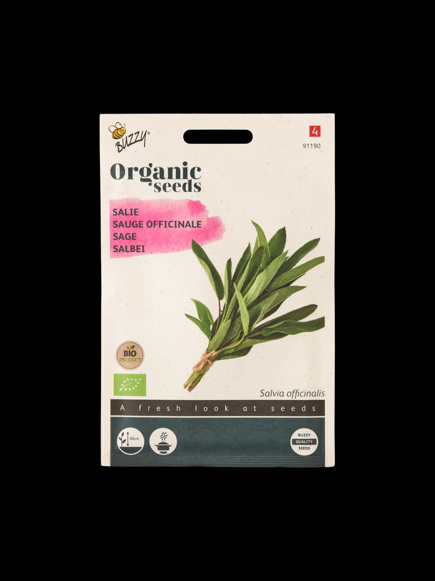 Buzzy® økologiske salviefrø kommer i en pakke på ca. 0,5 g.Så salviefrøene fra marts til april i en propagator eller fra april til juni i et såbed.