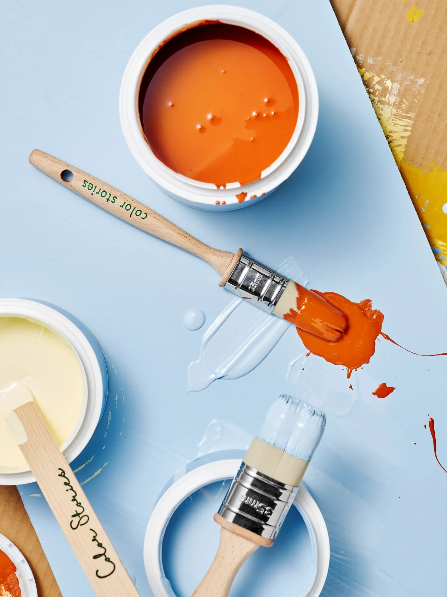 Malerpenslen fra Color Stories er lavet af bøgetræ og har polyesterbørstehår. Den måler 25 mm i bredden.”At bringe farve ind i Deres hjem er en vidunderlig måde at sætte et personligt præg på Deres interiør,” siger Anna med stor glæde. Hun er netop blevet færdig med at male to spisebordsstole i søstrenes yndlingsfarver og kigger nu på væggen i sit hobbyrum med et målrettet blik.”Bare husk at dække eventuelle overflader af, så de ikke bliver dækket af lige så meget maling som dit ansigt, kære Anna,” griner Clara. “Du har ret,” svarer hendes søster. “Og vi skal også huske at rengøre penslerne efter brug, så de er klar til det næste, farverige projekt.”De kan finde en maleguide på søstrenes Color Stories-brandside.