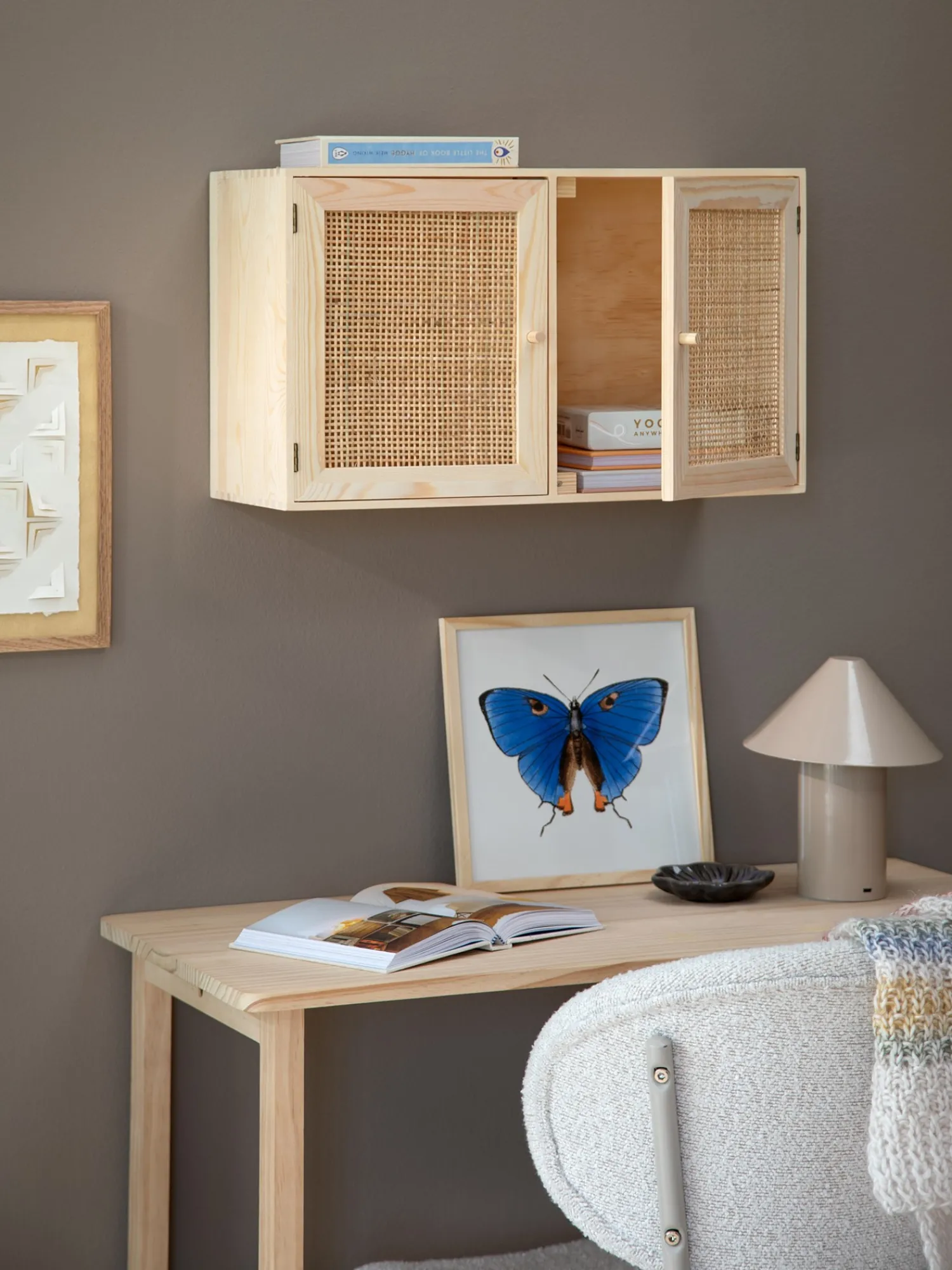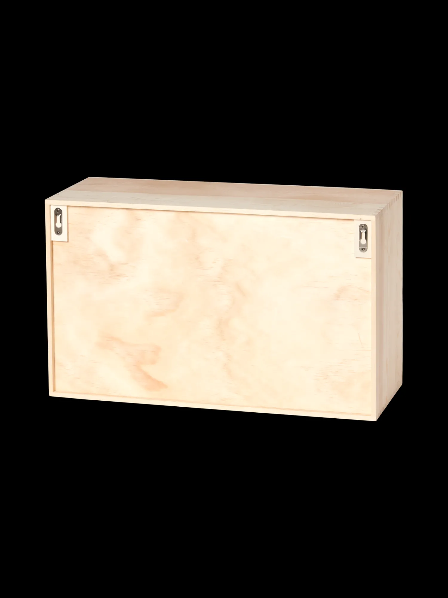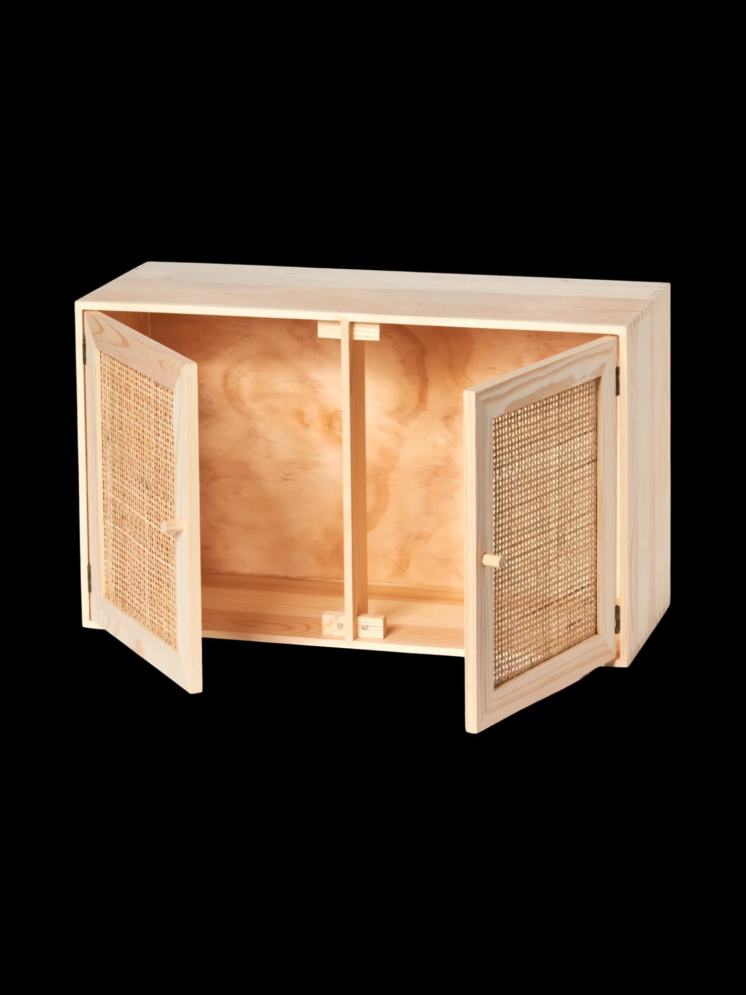 Søstrenes nøgleskab er lavet af FSC®-certificeret fyrretræ, krydsfiner og rattan.
