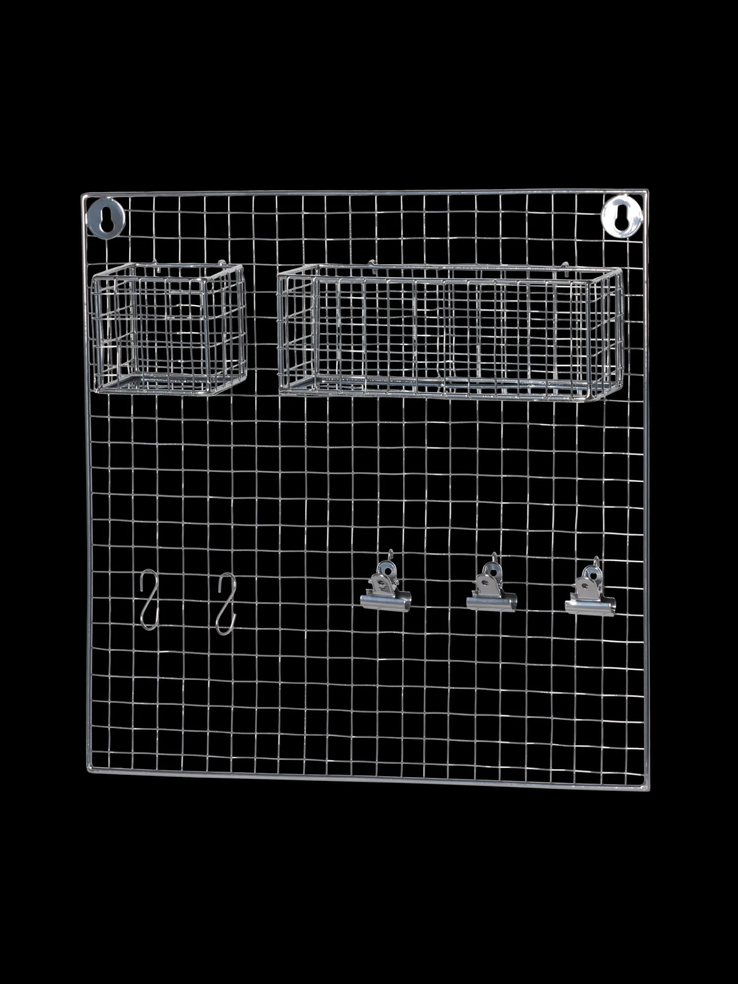 Søstrenes trådhylde er lavet af jern og måler 38 x 38 cm. Den indeholder 3 klemmer, 2 kroge og 2 hylder. Indret Deres hjem, og nå nye højder med søstrenes trådhylde.