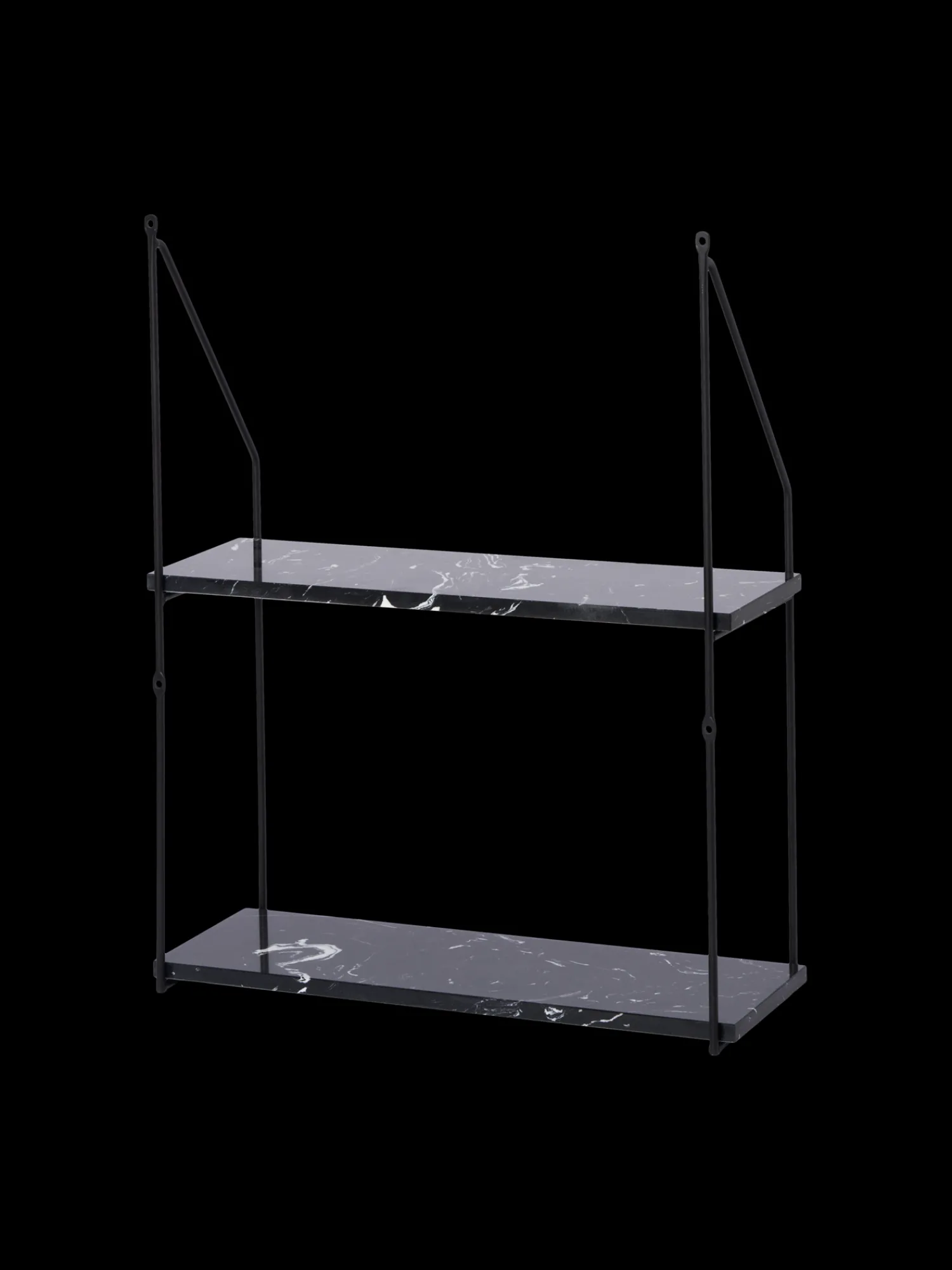 Søstrenes vægstativ er lavet af marmor med jernbeslag. Reolen har to hylder.Da marmor er et naturmateriale, gør søstrene opmærksom på, at produktet kan variere en smule i farven og udtrykket.