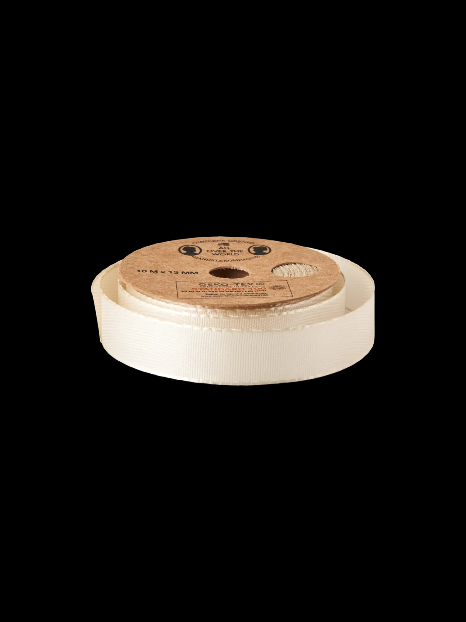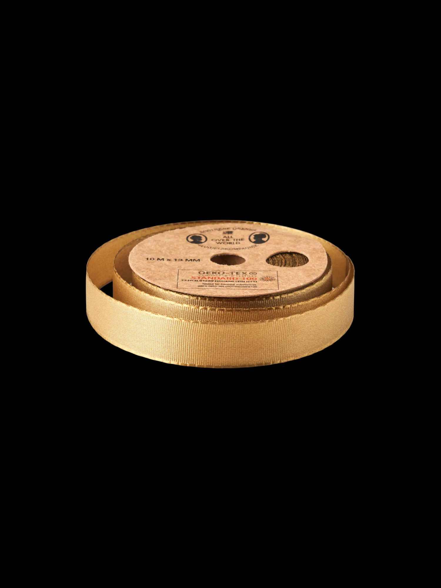 Søstrenes bånd er lavet af STANDARD 100 by OEKO-TEX®-certificeret polyester. Det måler 13 mm x 10 m.”Båndet er prikken over i’et på gaveindpakningen,” siger Clara.