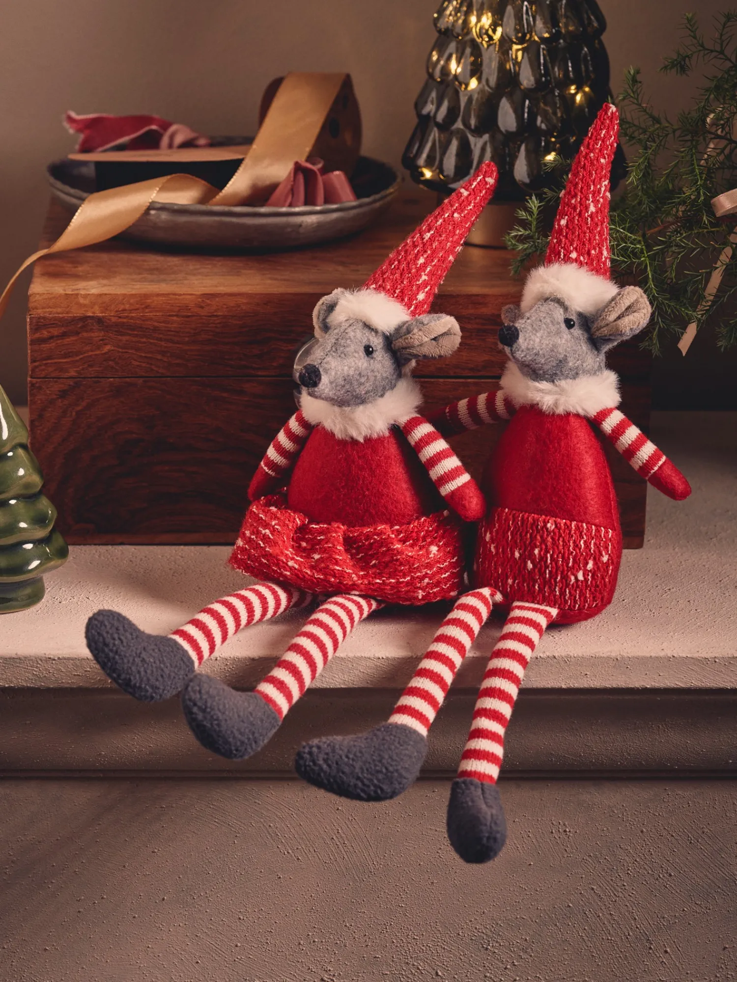 Søstrenes dekorative julemus er en charmerende tilføjelse til Deres julepynt. Lad den lille gæst kigge ned fra en hylde, eller tilføj den som et festligt element til Deres hyggehjørne.
