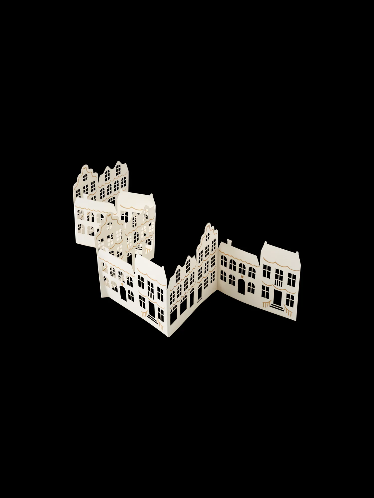 Søstrenes borddekoration i papir har et smukt bylandskab og er FSC®-certificeret. Den kan foldes ud og bruges til at pryde bordplader, hylder eller andre overflader i Deres hjem. Efter brug kan den foldes sammen og opbevares til næste år.