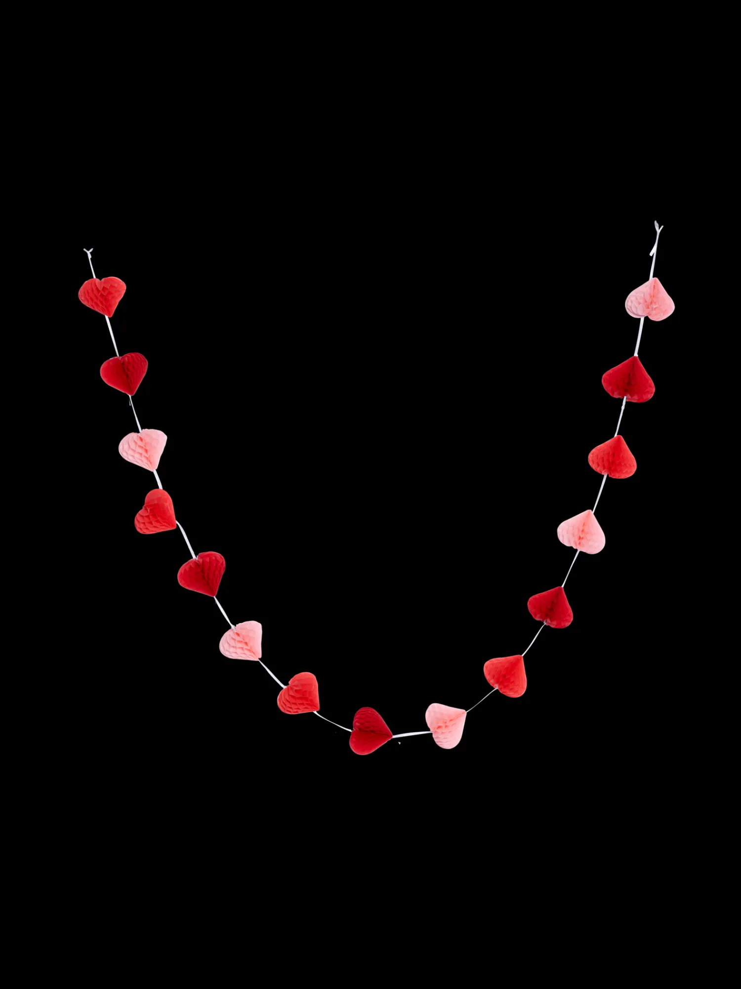 Søstrenes guirlande med hjerteformede pomponer er lavet af 100% FSC®-certificeret papir og måler 185 m.