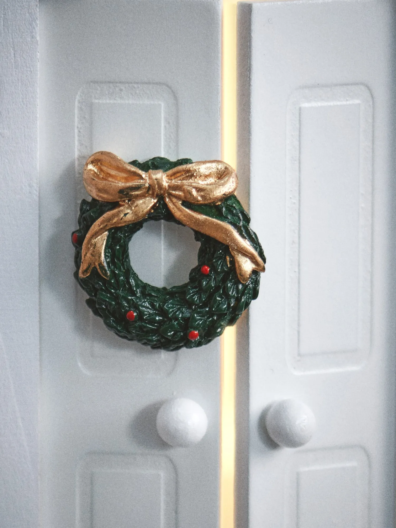 Søstrenes sæt med mini-julepynt består af 2 kranse og 4 kristtornkviste. Det er en herlig tilføjelse til Deres miniature julelandsby eller det lille julenissehus.