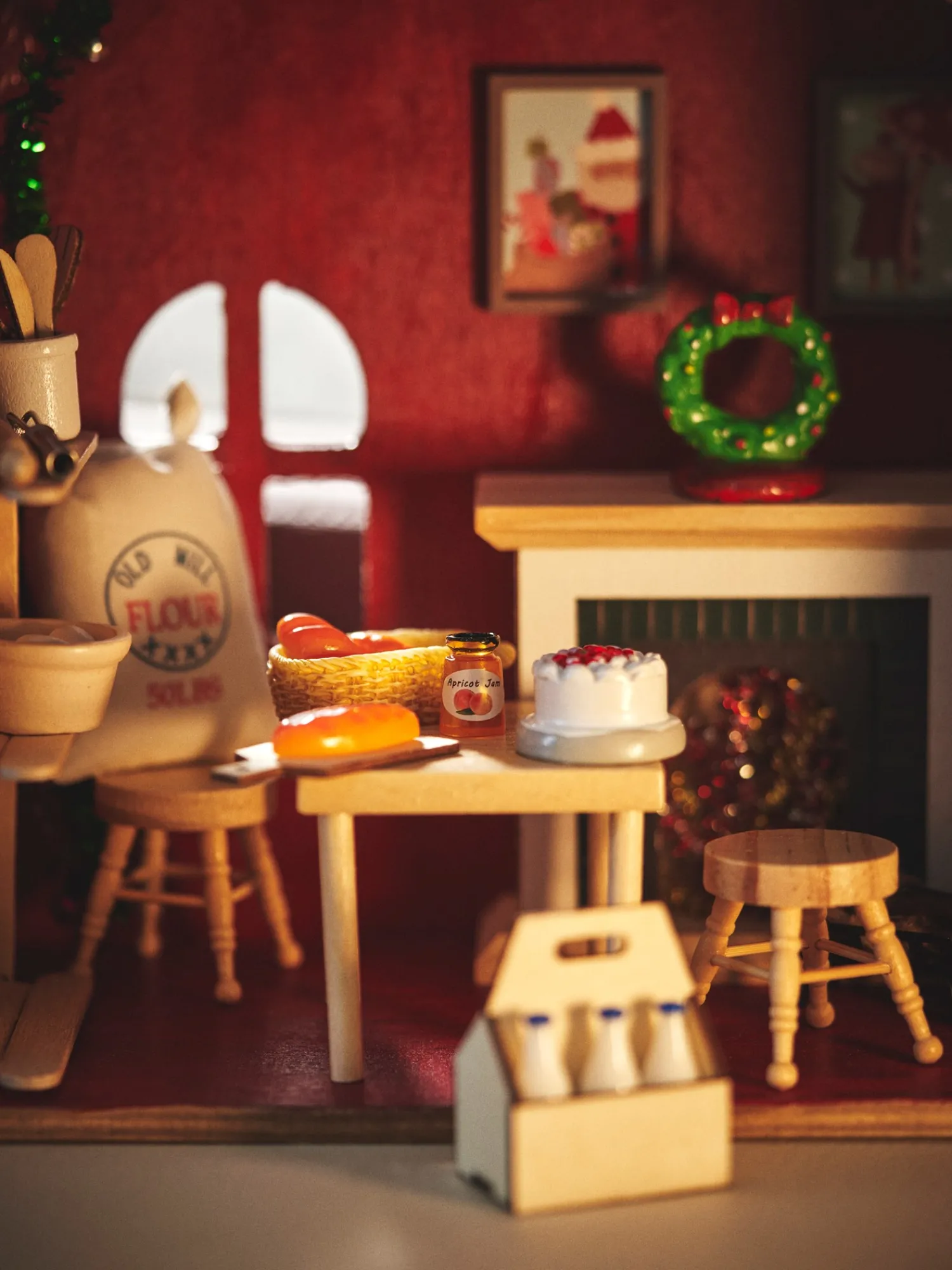 Søstrenes minimadsæt består af en brødkurv på 4 x 2,1 cm, 3 forskellige brød, en honningkrukke, en mælkekasse af 100% FSC®-certificeret krydsfiner, 6 mælkeflasker og en pose mel.Det er en herlig tilføjelse til Deres miniature julelandsby eller det lille julenissehus.