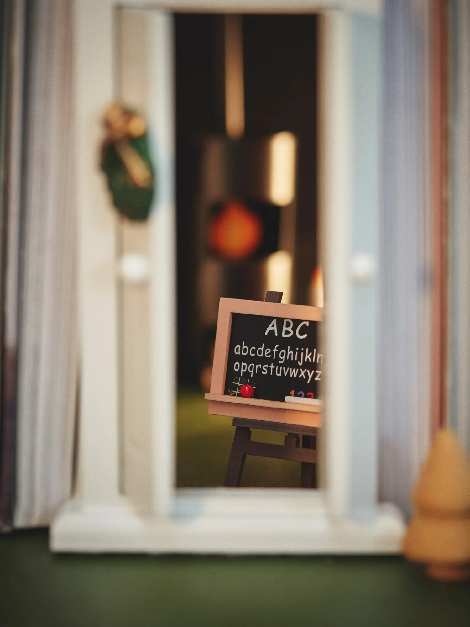 Søstrenes ministaffeli med tavle er fremstillet af 100% FSC®-certificeret fyrretræ og krydsfiner.Det er en herlig tilføjelse til Deres miniature julelandsby eller det lille julenissehus.