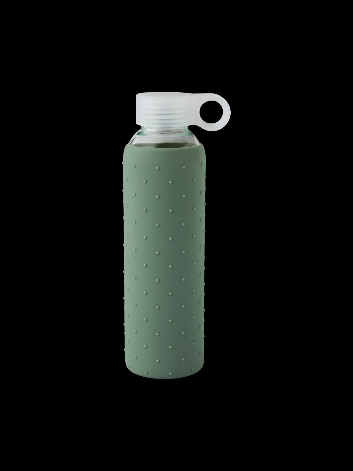 Søstrenes drikkeflaske er lavet af glas og silikone, og den kan indeholde op til 500 ml.Søstrene gør Dem venligst opmærksom på, at denne drikkeflaske ikke tåler opvaskemaskine.