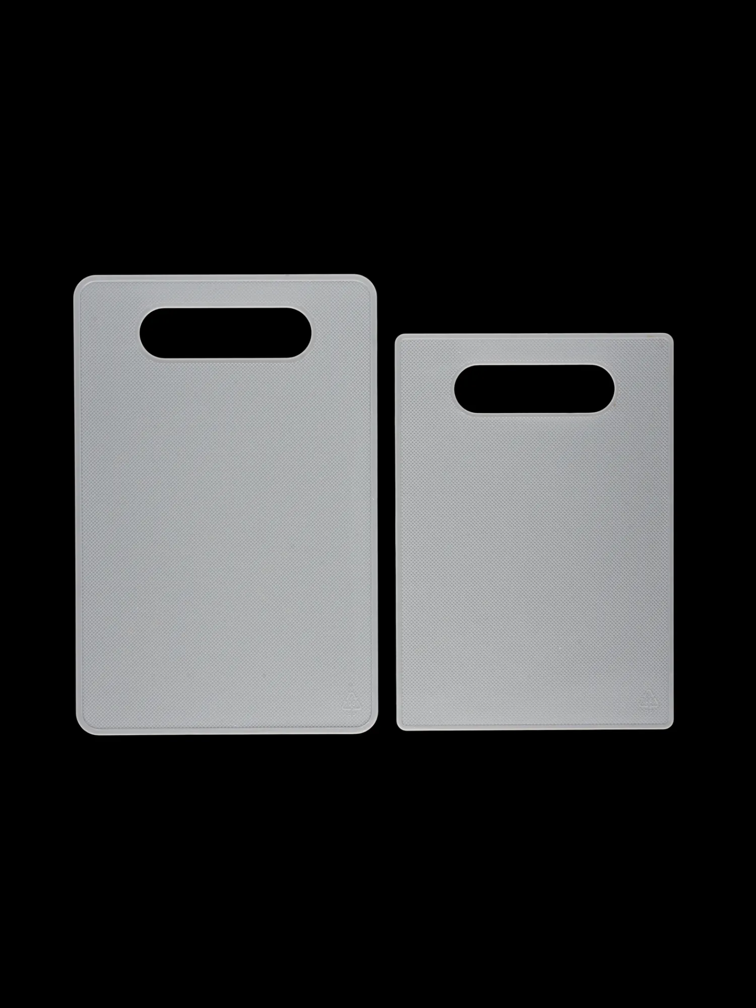 Søstrenes skærebrætter er lavet af polypropylen. Sættet inkluderer 2 styk, hvoraf det ene måler 25 x 17,5 cm og det andet måler 29 x 19 cm.”Udstyr Deres køkken med alle de fornødne redskaber,” anbefaler søstrene.