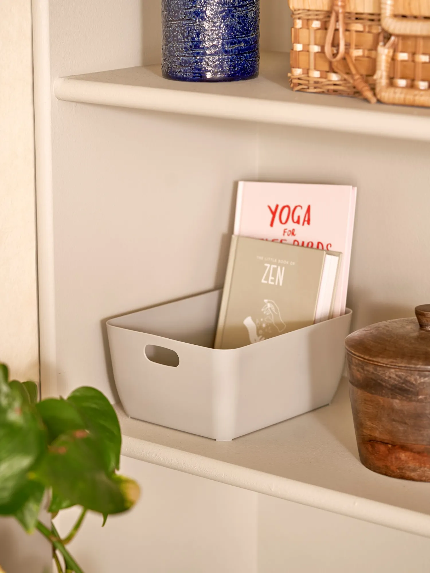 Søstrenes kurv er lavet af polypropylen og kan bruges til alverdens former for opbevaring i hjemmet.
