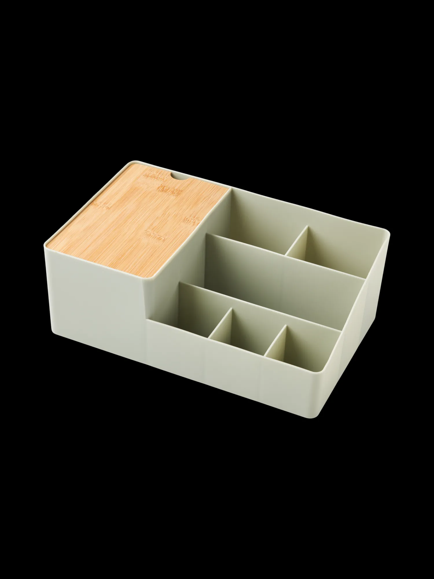 Søstrenes makeup-opbevaring er lavet af polypropylen og 100 % FSC®-certificeret bambus.