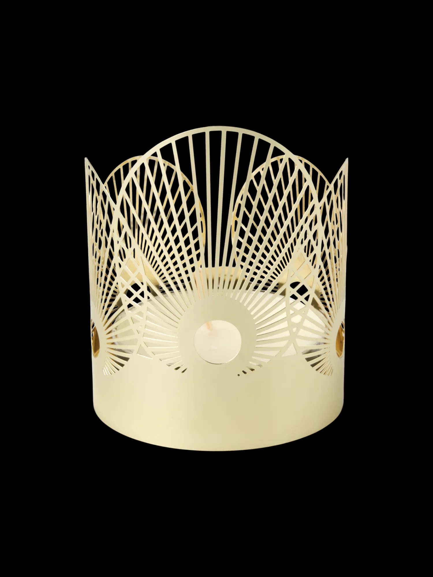 Den elegante lysestage fra det svenske mærke Pluto er en skøn tilføjelse til ethvert hjem. De gyldne gitterdetaljer reflekterer lyset smukt og skaber charmerende blafrende skygger.Søstrene bemærker venligt, at denne lysestage kommer med 1 fyrfadslys.