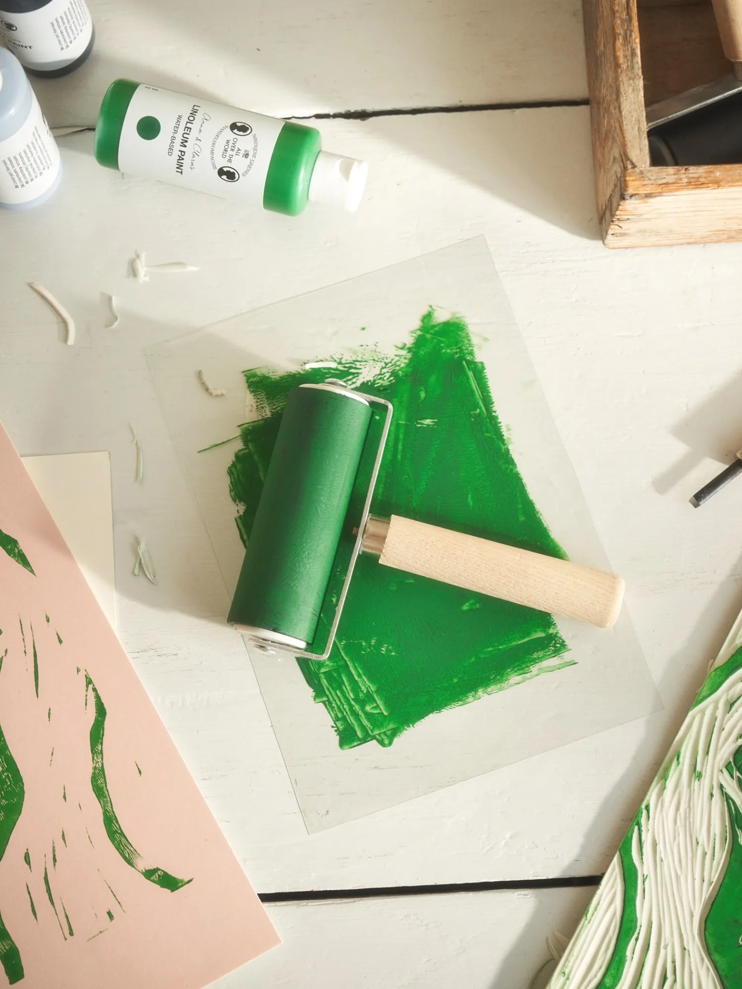 Søstrenes malerrulle har et FSC®-certificeret håndtag i poppeltræ og rullen er lavet af termoplastisk gummi. Den måler 10 cm.Brug denne praktiske malerrulle til Deres linoleumskunstværker.