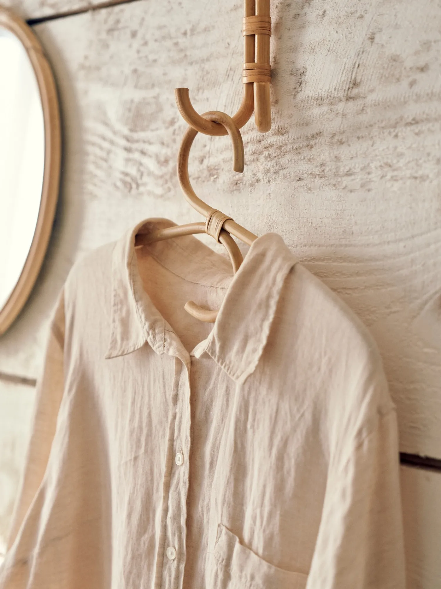 Søstrenes bøjle er lavet af rattan og er en dejlig tilføjelse til et tøjstativ eller garderobe.