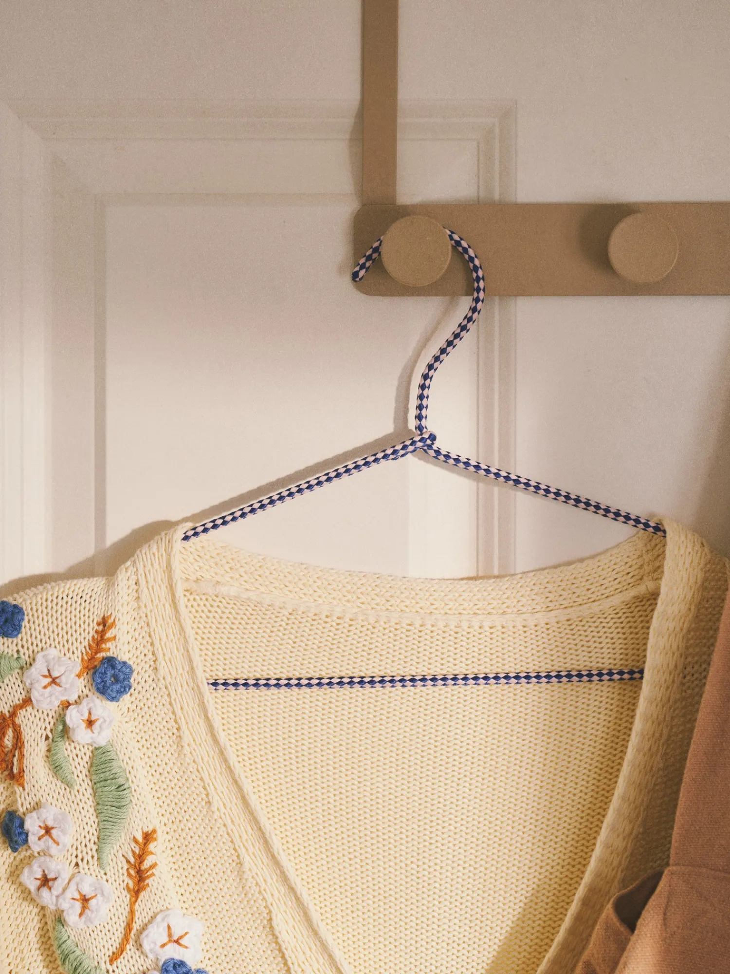 Søstrenes bøjle er lavet af jern og er beklædt med stof, hvilket gør den både dekorativ og skånsom mod Deres tøj.