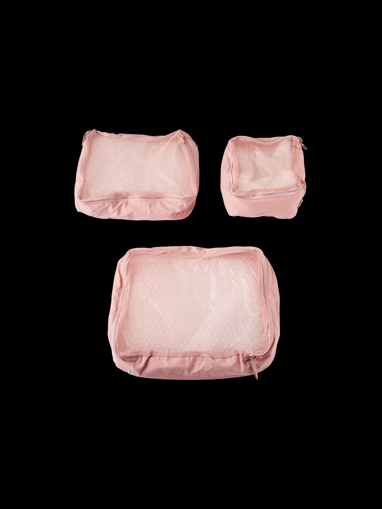 Søstrenes rejsesæt er lavet af STANDARD 100 by OEKO-TEX®-certificeret bomuld og indeholder tre dele. Den store måler 33 x 7 x 24 cm, den mellemstore måler 27,5 x 7 x 21 cm, og den lille måler 20,5 x 7 x 16 cm.