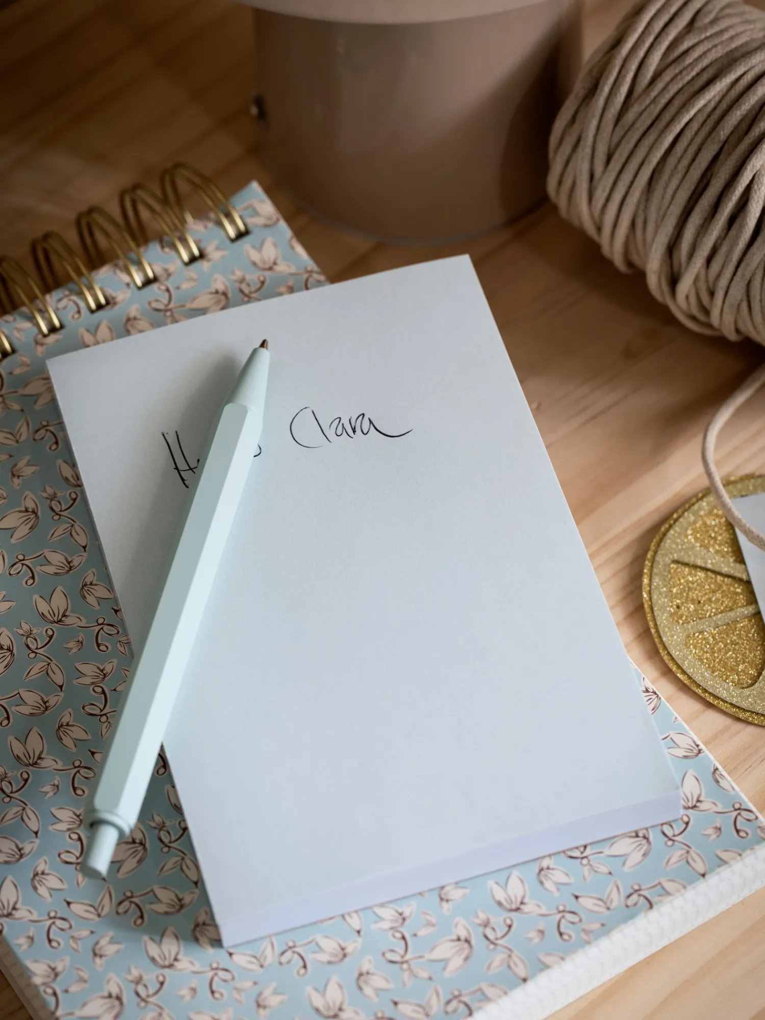 Søstrenes notesblok er lavet af FSC®-certificeret papir og måler 15 x 11 cm.