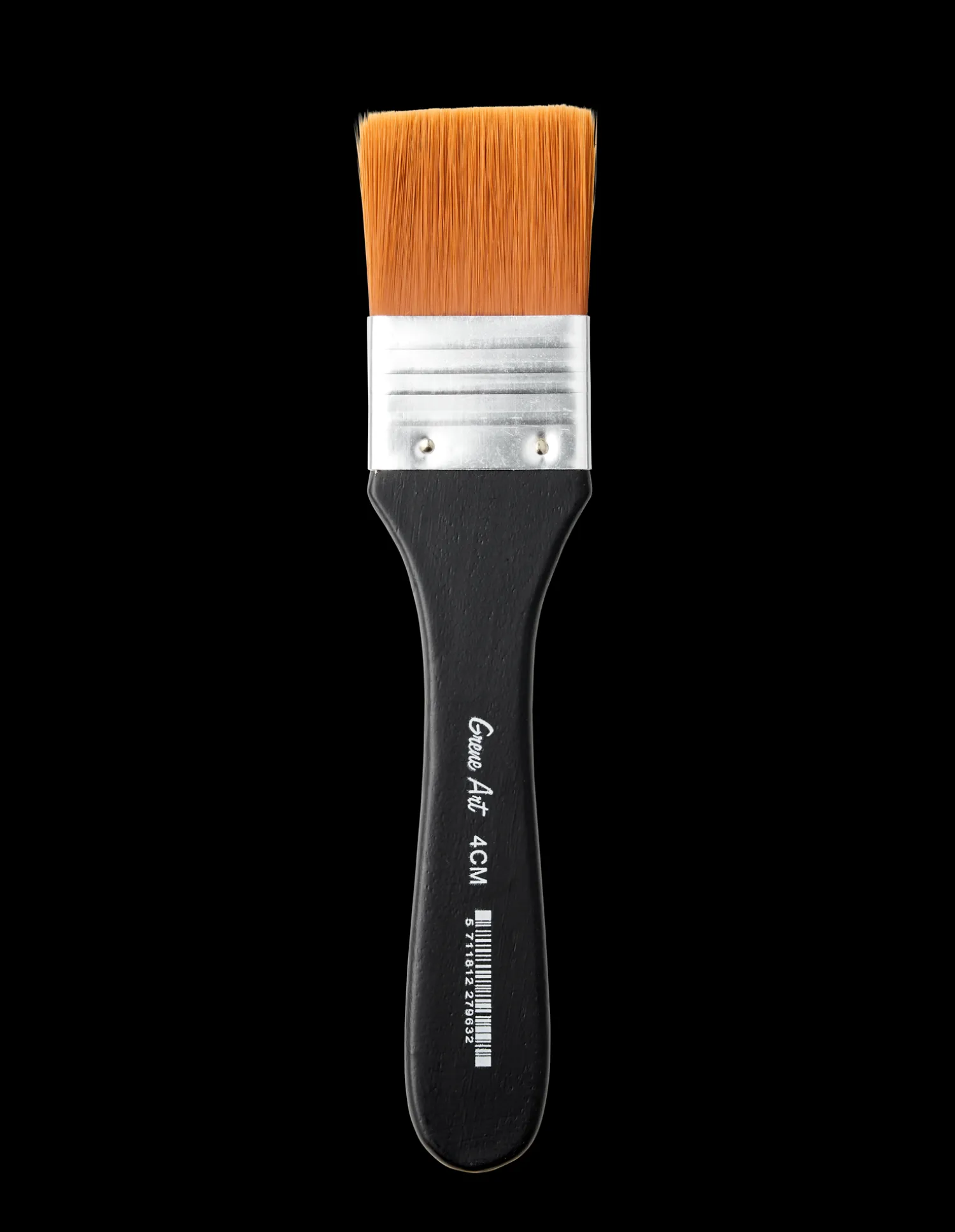 Anna står i sit atelier og beundrer sine mange pensler og forskellige typer af maling, der pryder de mange hylder i rummet. Annas mange pensler er placeret i krukker, og hun ynder at have pensler i forskellige størrelser og former. ”Penslerne har hver sit formål, og de tilfører alle forskellige udtryk i maleriet,” forklarer Anna med et smil. Anna har flere slags maling på hylderne i sit atelier, så hun altid kan skabe netop dét udtryk, hun har i tankerne. Det er derfor en fordel, hvis penslerne kan anvendes til mere end én slags maling. Hvis du ønsker en pensel, der kan anvendes til flere formål, foreslår Anna denne pensel med nylonhår. ”Denne nylonpensel egner sig særdeles godt til akrylmaling, gouachefarver og poster-farver,” påpeger Anna. Penselhovedet måler 4 cm, hvorfor Anna ofte anvender den til at farvelægge større områder på lærredet eller til at male tykkere penselstrøg.