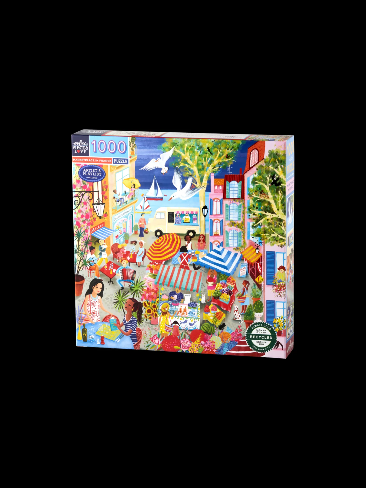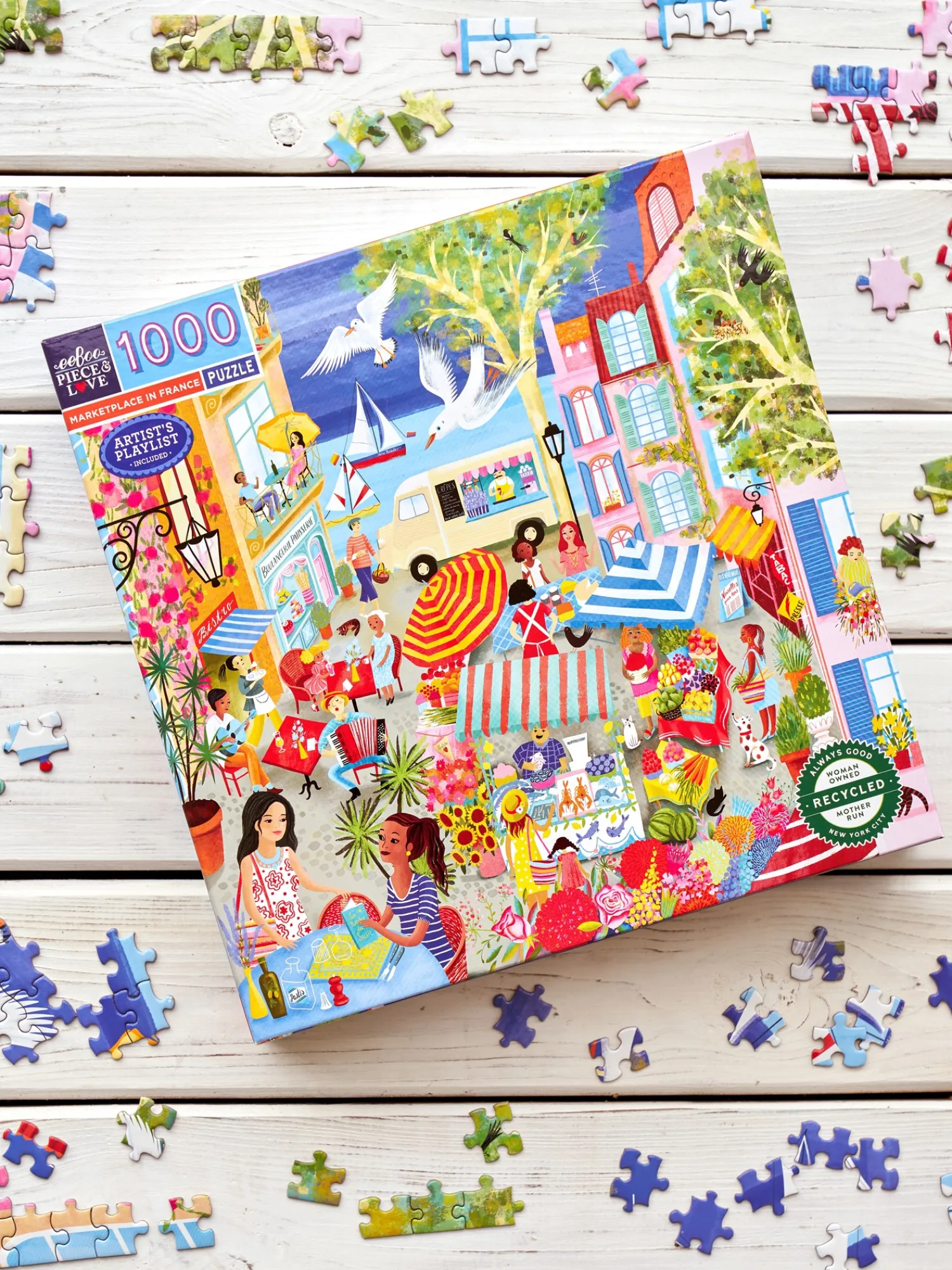 Søstrene gør Dem venligst opmærksom på, at denne vare kun forhandles online.Marketplace in France-puslespillet fra eeBoo er lavet af papir og måler 58 x 58 cm, når det er samlet. Puslespillet har 1000 brikker. Illustrationen er af Uta Krogmann.Hvad end de hygger sig indenfor på regnvejrsdage eller sidder på terrassen, når solen skinner, finder Anna og Clara stor fornøjelse i at lægge puslespil sammen. “Det er en beroligende aktivitet, som giver masser af plads til at småsnakke, alt imens man lægger puslespillet,” siger Clara.Hun samler metodisk brikkerne, der danner rammen om puslespillet, mens Anna forsøger at finde farver og former, der lader til at passe sammen. De har hver deres tilgang til at lægge puslespil, og sammen tilbringer de en harmonisk eftermiddag. “Det er altid en stor glæde, når det endelige resultat afsløres, og man kan fordybe sig i de skønne små detaljer i billedet,” siger Anna med et smil.