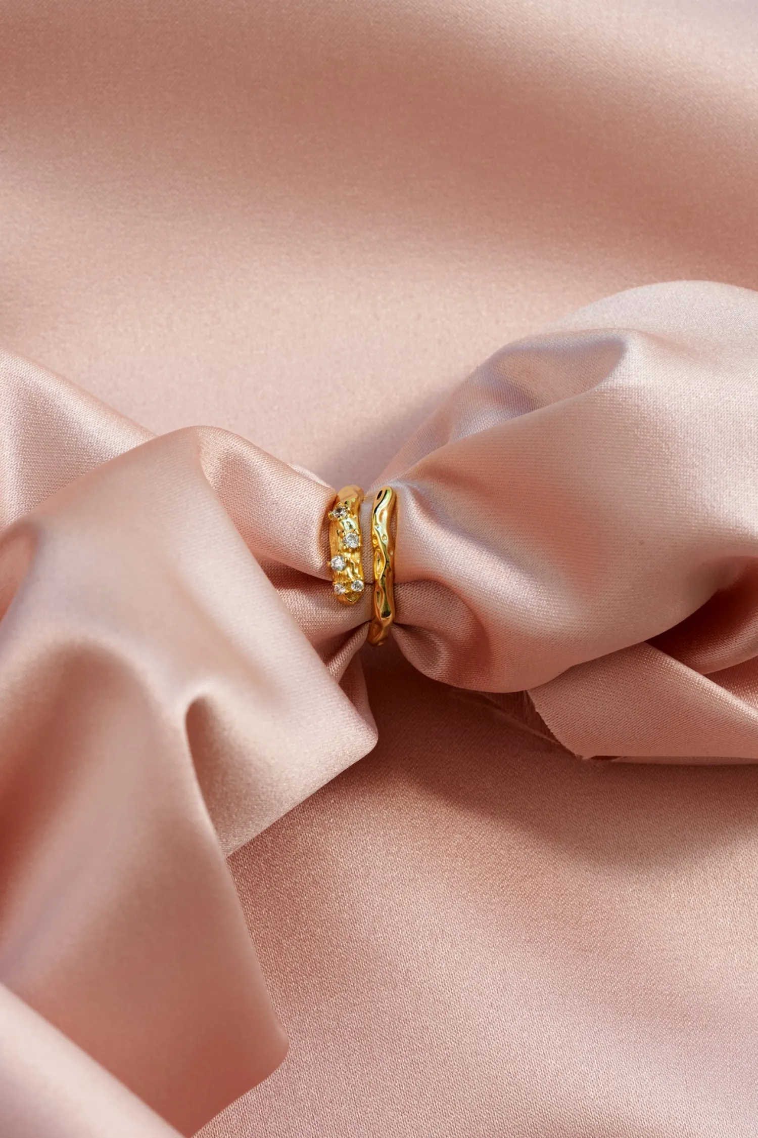 Søstrene gør Dem venligst opmærksom på, at denne vare kun forhandles online.Shiny Twist-ringen er lavet af 925 sterlingsølv, belagt med 18 karat guld og prydet med nogle få cubic zirconia sten. Ringen er justerbar i størrelsen og kommer i et smukt lille smykkeskrin. “Cubic zirconia-stenene på ringen tilføjer et funklende strejf,” siger Clara med et smil. “En elegant ring, der ser smuk ud alene, men den kan også bæres sammen med andre ringe.” Anna og Clara gør Dem venligst opmærksom på, at De bør undgå direkte kontakt med fugt og væske for en længere holdbarhed af guldbelægningen.