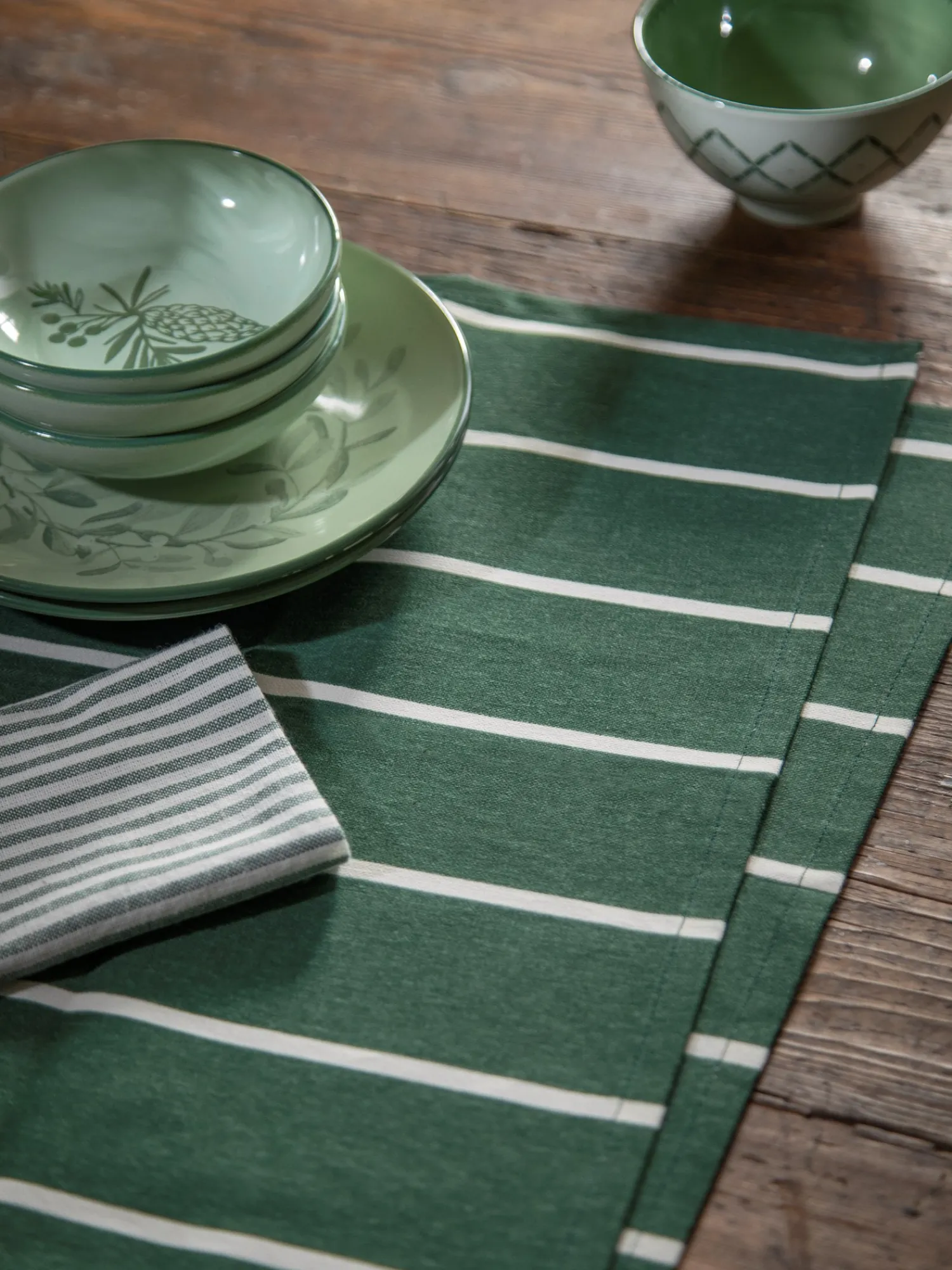 Søstrenes dækkeserviet er lavet af STANDARD 100 by OEKO-TEX®-certificeret bomuld og har dejlige julefarver for et festligt udtryk.