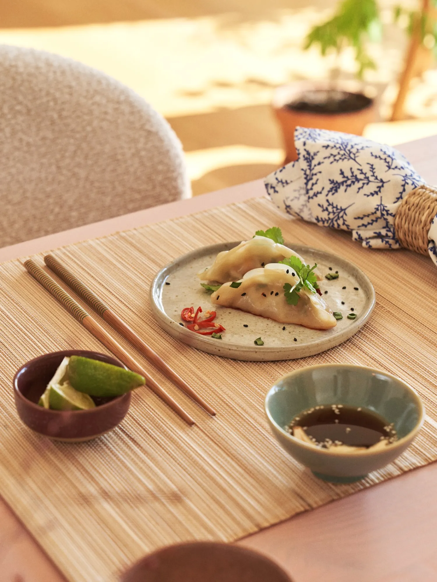 Søstrenes dækkeserviet er lavet af 100 % FSC®-certificeret bambus og måler 45 x 35 cm. Den kan rulles sammen for nem opbevaring efter Deres måltid.